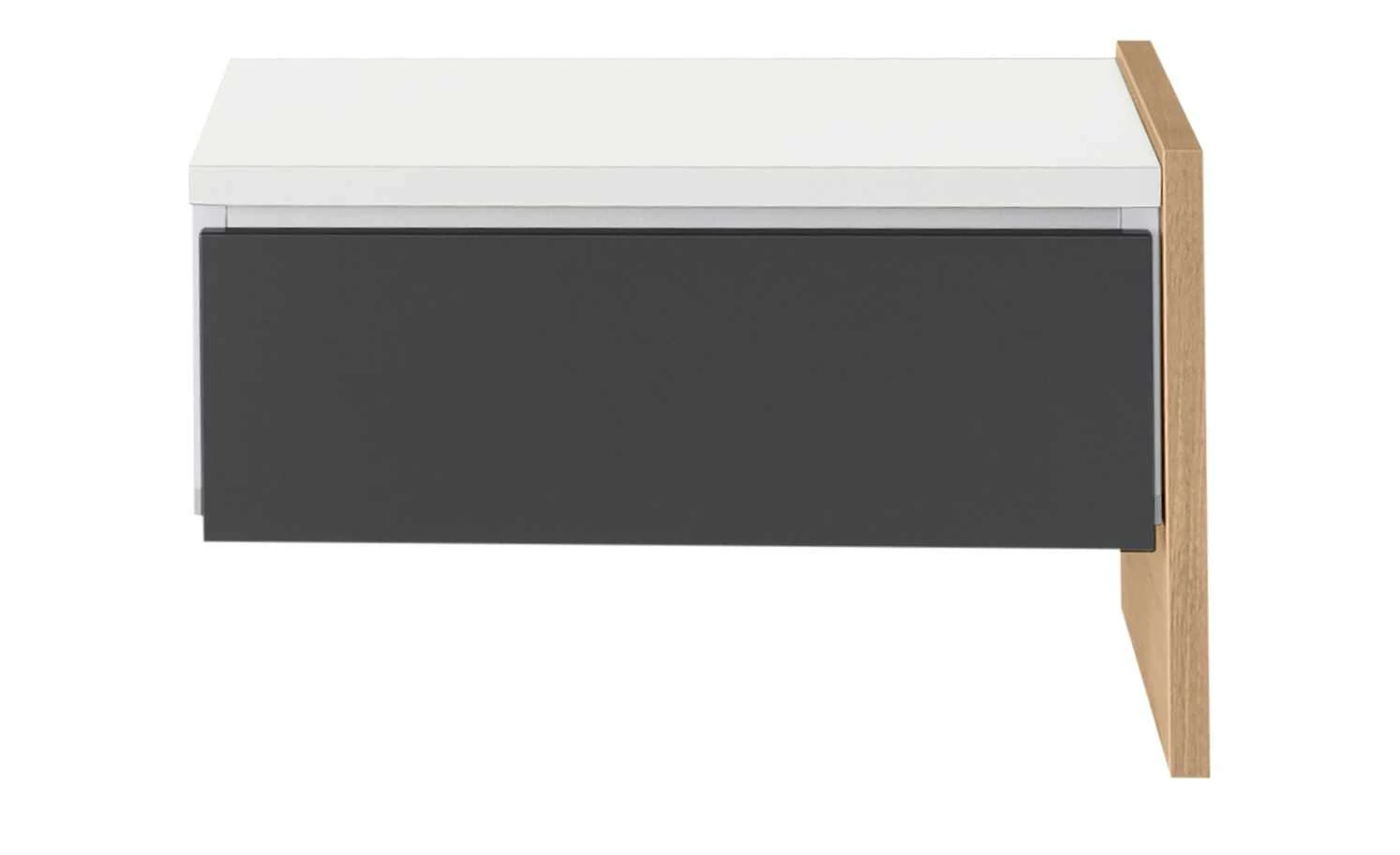 Die Nachtkommode Holly ist eine gute Ergänzung für das gleichnamige Bett. Die Konsole wird auf der einen Seite am Bettgestell befestigt. Die andere Seite der Konsole wird von einer stabilen Wange getragen. Holly hat neben der Ablagefläche oben auch ein Schubfach. Die Oberfläche ist dank der Melaminbeschichtung kratzfest.
