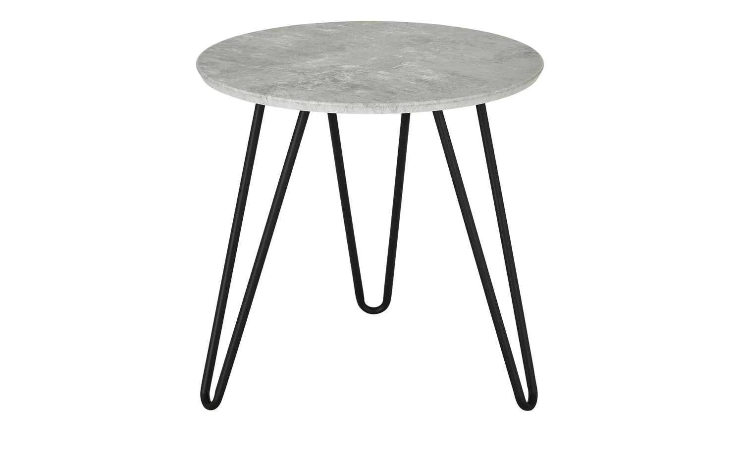 Der Beistelltisch Anian passt vor allem zu modernen Einrichtungen. Vor allem das Beton-Dekor (Nachbildung) der Tischplatte liegt im Trend. Es wird durch drei schwarze Beine abgesetzt. Sie bestehen aus Metallstreben und sind luftig designt. Anian kann alleinstehend verwendet werden – oder den Couchtisch der Serie ergänzen.