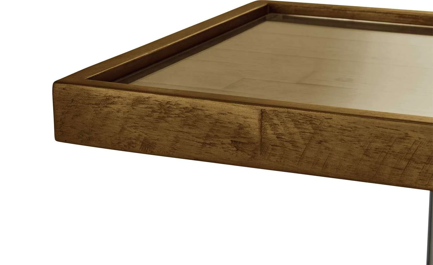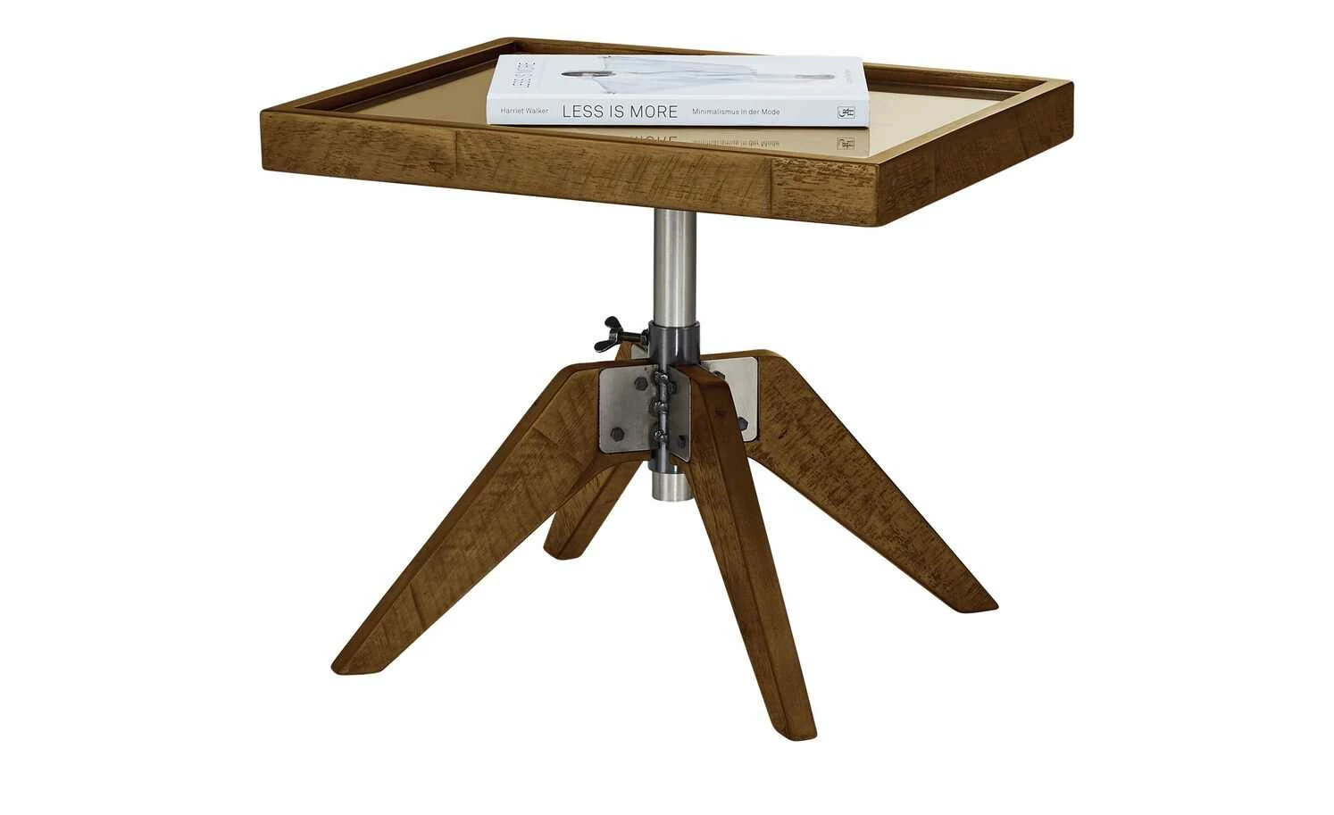 Der Beistelltisch Carpi Akazie punktet mit seiner Funktionalität. Er lässt sich ganz leicht in der Höhe verstellen – und zwar von 34 bis 54 Zentimeter Höhe. So können Sie ihn ganz nach Bedarf anpassen. Die rechteckige Tischplatte ist aus massiver Akazie in Vintageoptik gefertigt. Zusätzlich ist sie mit einer Glasoberfläche ausgestattet. Sie ist robust und lässt sich ganz leicht pflegen. An das 4-Fuß-Gestell aus massiver Akazie schließt sich eine Gestell-Säule an. Sie ist aus stabilem Metall gefertigt.