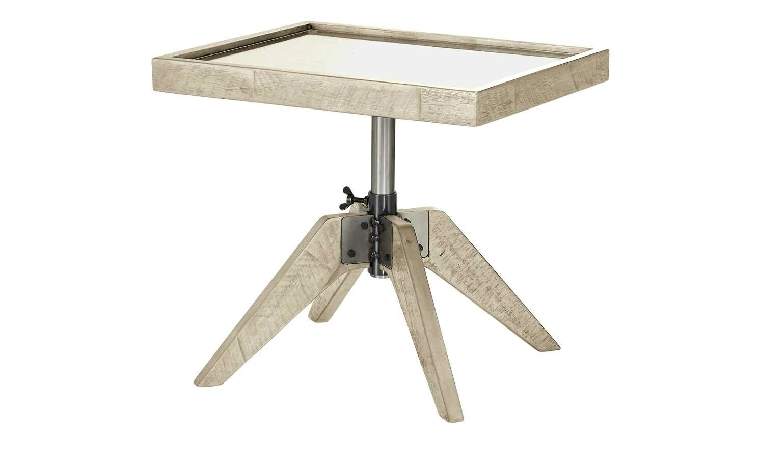 Der Beistelltisch Carpi Akazie punktet mit seiner Funktionalität. Er lässt sich ganz leicht in der Höhe verstellen – und zwar von 34 bis 54 Zentimeter Höhe. So können Sie ihn ganz nach Bedarf anpassen. Die rechteckige Tischplatte ist aus massiver Akazie in Vintageoptik gefertigt. Zusätzlich ist sie mit einer Glasoberfläche ausgestattet. Sie ist robust und lässt sich ganz leicht pflegen. An das 4-Fuß-Gestell aus massiver Akazie schließt sich eine Gestell-Säule an. Sie ist aus stabilem Metall gefertigt.