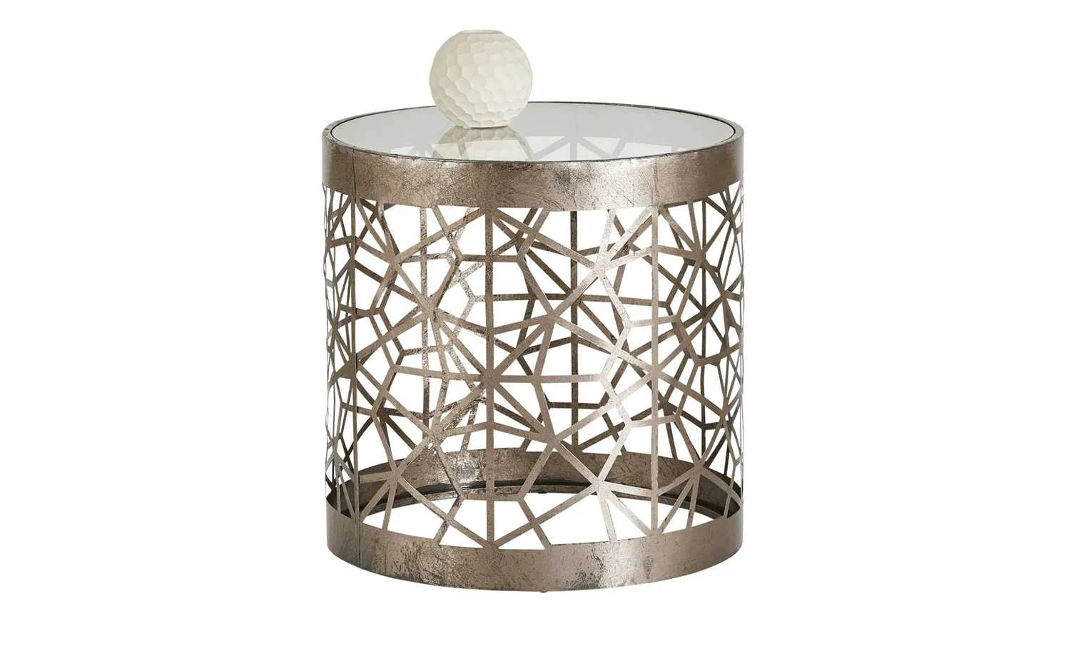 Das geometrische Stahlgestell macht den Beistelltisch Gleam zum absoluten it-Piece in jedem Raum. Die antikbronzefarbenen Verstrebungen sorgen für einen modernen Look und tragen die Tischplatte zuverlässig. Diese besteht aus hochwertigem, pflegeleichtem Sicherheitsglas und bietet Ihnen nützlichen Ablageplatz. Auch Pflanzen können hier gut in Szene gesetzt werden.