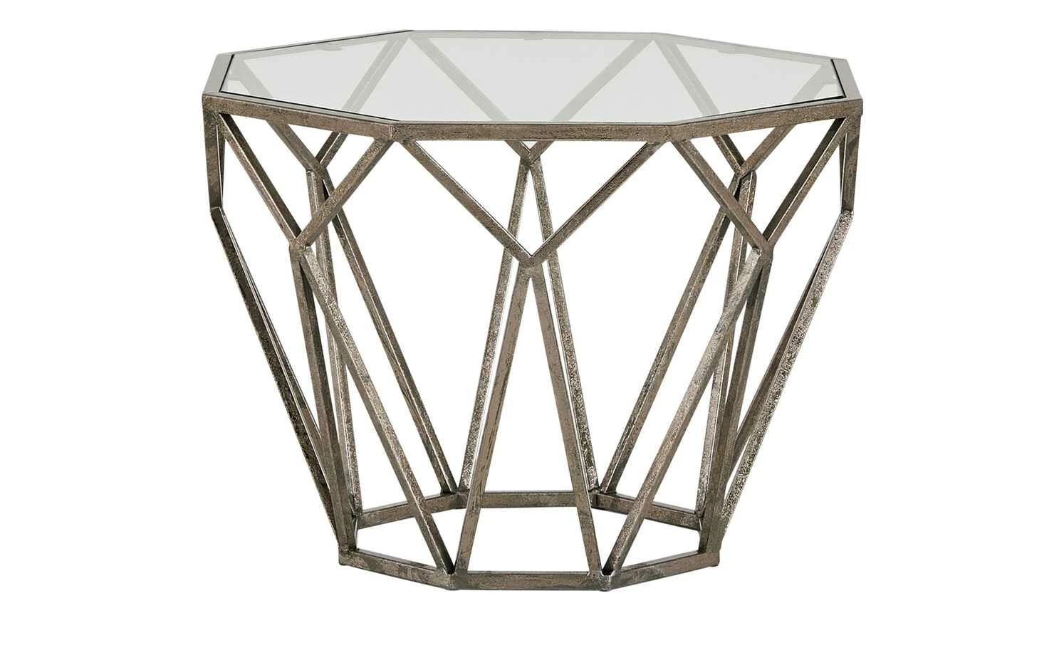 Das geometrische Stahlgestell macht den Beistelltisch Gleam zum absoluten it-Piece in jedem Raum. Die antikbronzefarbenen Verstrebungen sorgen für einen modernen Look und tragen die Tischplatte zuverlässig. Diese besteht aus hochwertigem, pflegeleichtem Sicherheitsglas und bietet Ihnen nützlichen Ablageplatz. Auch Pflanzen können hier gut in Szene gesetzt werden.
