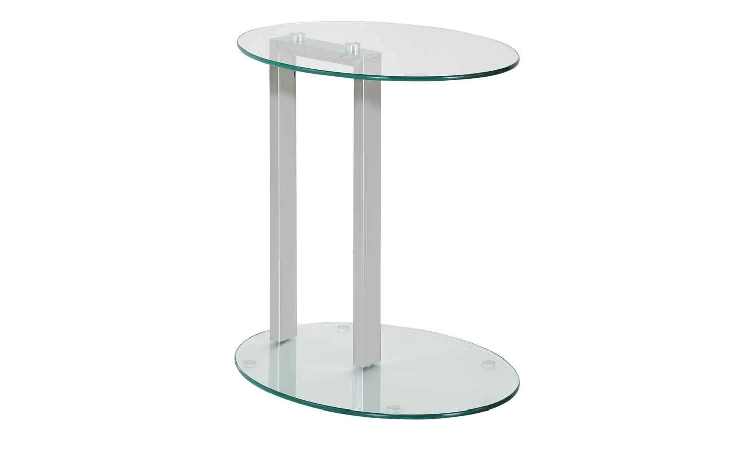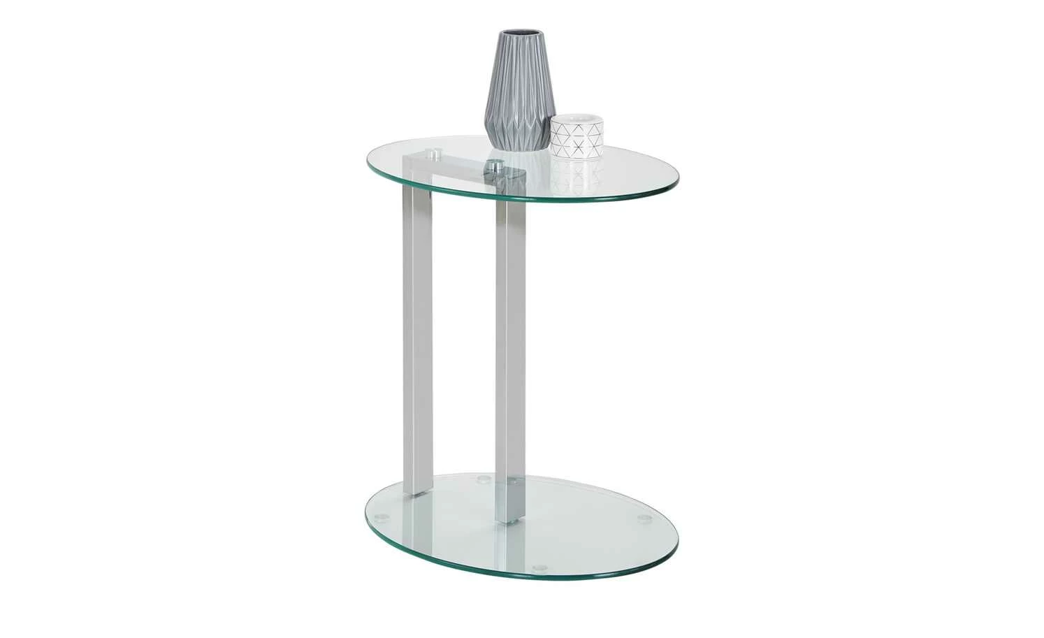 Hanau ist ein dekorativer kleiner Beistelltisch. Er macht im Wohnraum eine ebenso gute Figur wie in Flur oder Wintergarten. Im Schlafzimmer kann Hanau auch als Nachttischchen dienen. Tischplatte und Fuß sind aus Glas. Wobei für die Tischplatte ein Sicherheitsglas verwendet wurde. Es ist besonders robust. Staub und Flecken können Sie leicht wegwischen. Das Säulengestell ist aus verchromtem Stahl.