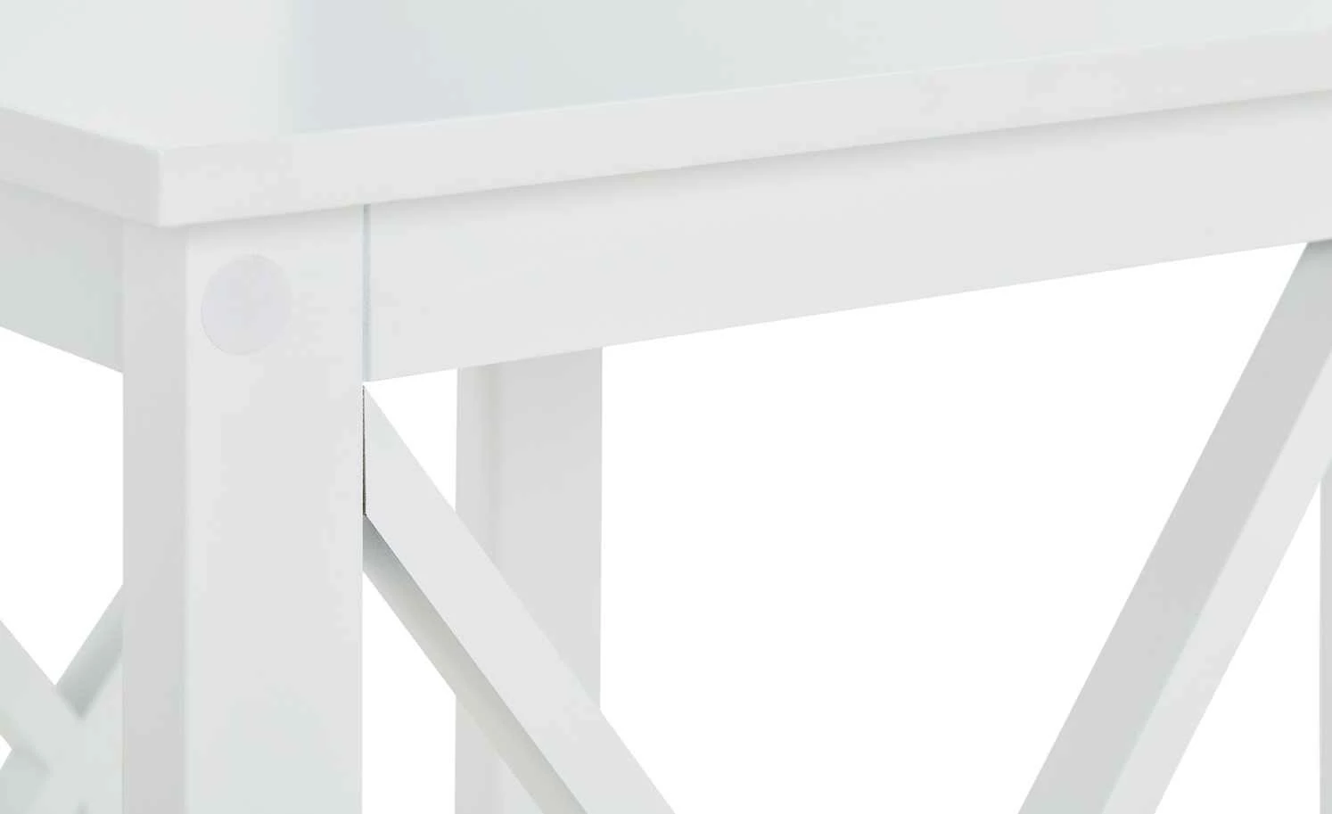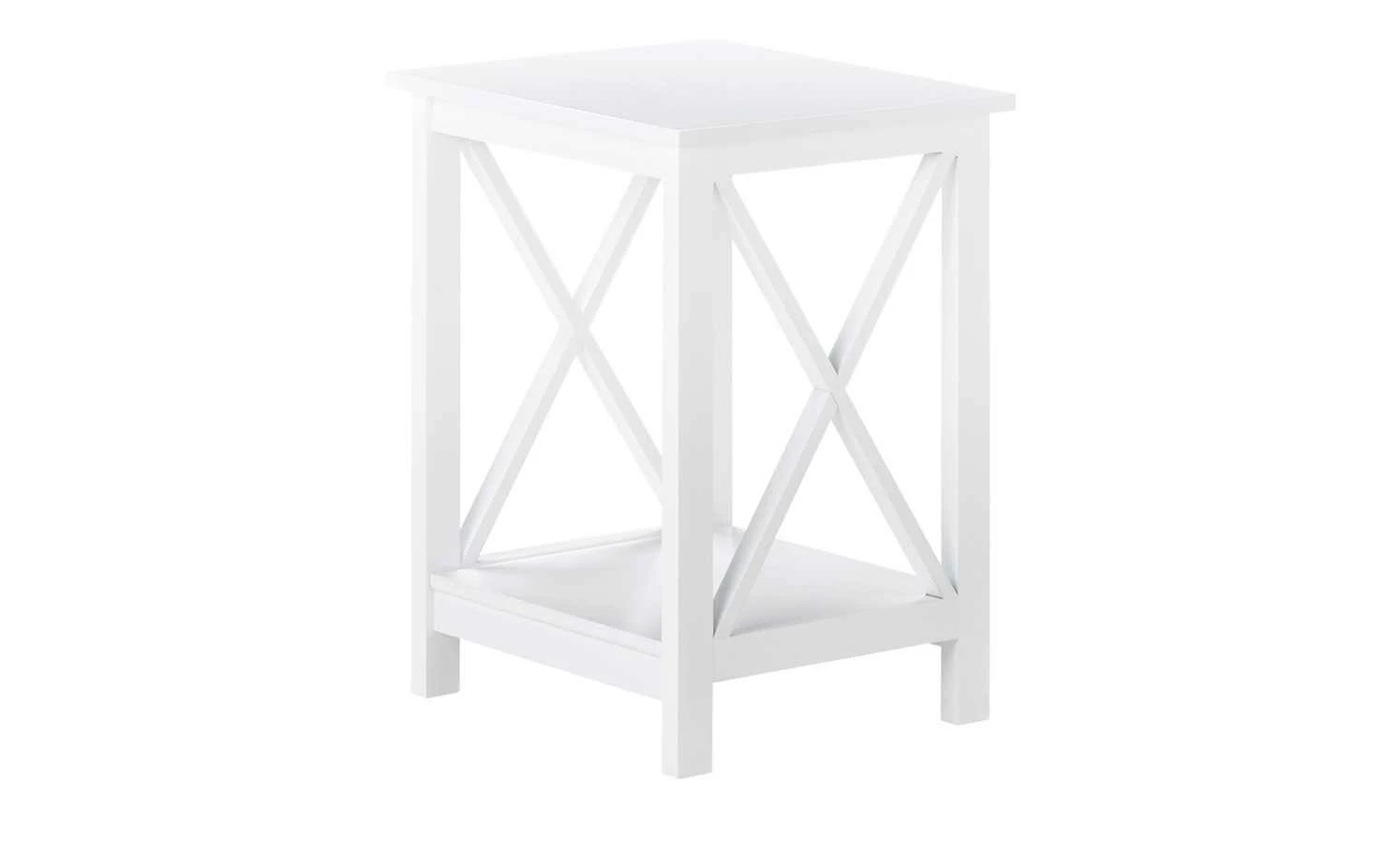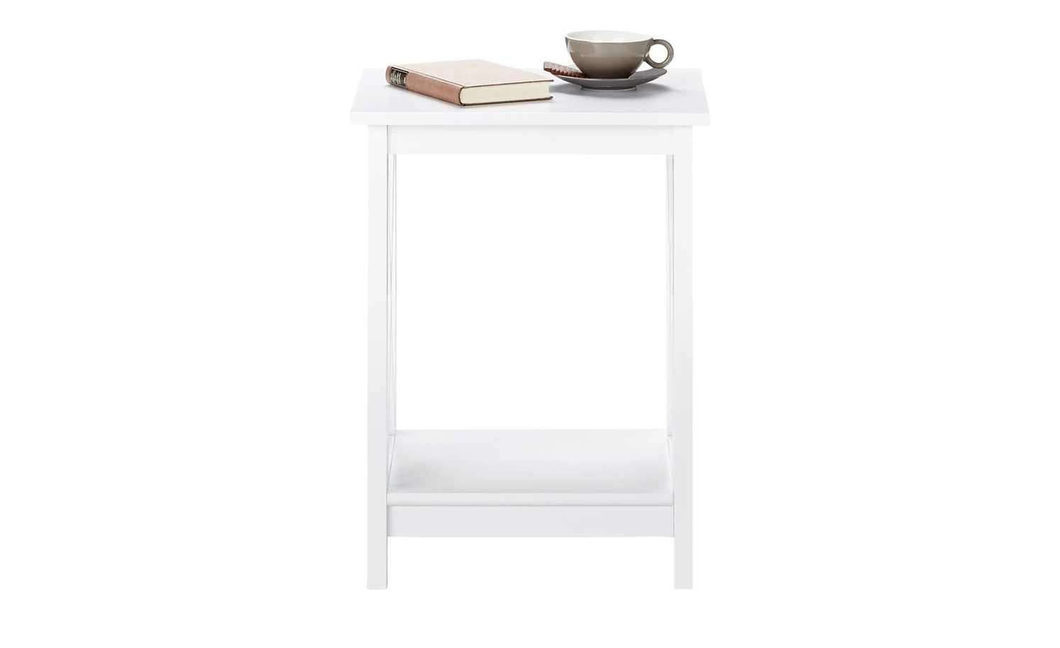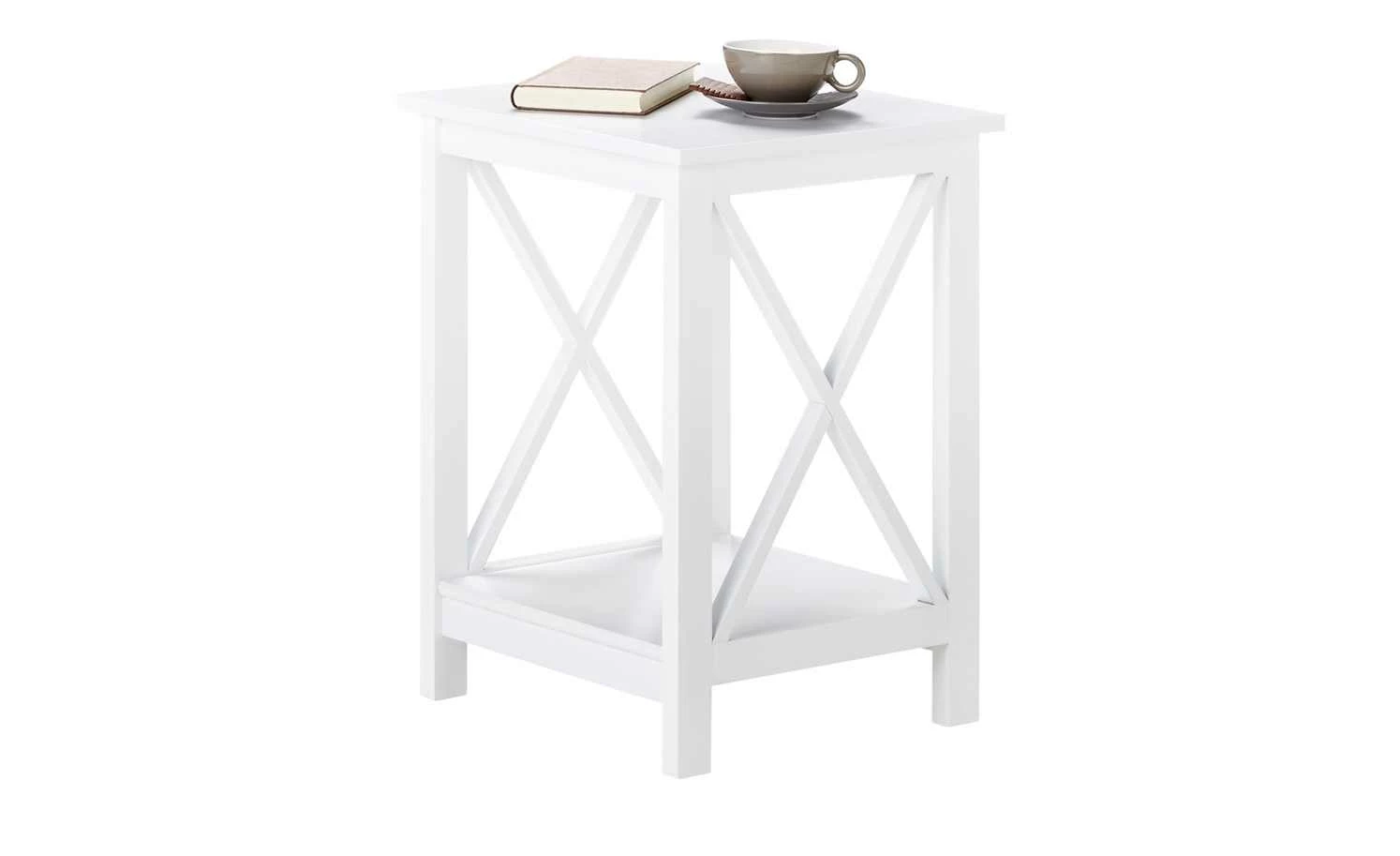 Ob neben der Couch oder wo auch immer Sie ihn brauchen, der Beistelltisch Mosi von Love it ist überaus praktisch. Die beiden Ablagen bieten genügt Platz, um auf ihnen Deko-Accessoires oder andere Dinge abzulegen. Mosi wurde komplett weiß lackiert und fällt durch seinen Landhausstil ins Auge. Ein Eyecatcher sind zum Beispiel die x-förmigen Verstrebungen an den Seiten.