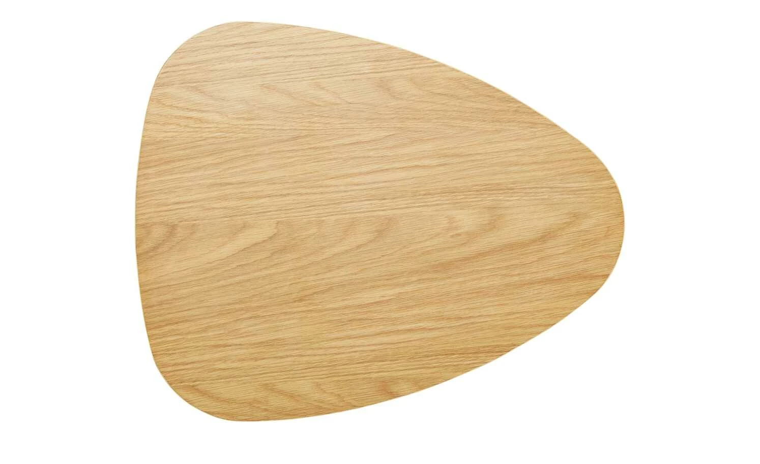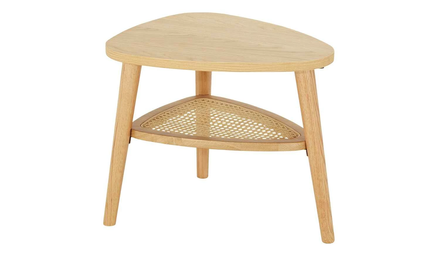 Natürliches Eichenholz in Kombination mit hellem Rattan: Das ist der Beistelltisch Panarea. Seine dreieckige Tischplatte ist mit massivem Eichenholz furniert und bietet Platz für Lektüre und Co. Direkt unter der Tischplatte befindet sich eine zusätzliche Ablagefläche aus Rattan: Dieses wurde im Stil vom Wiener Geflecht gearbeitet. Dafür wurden aus sechs Strängen Rattan die markanten Achtecke geflochten – Das Markenzeichen des Wiener Geflechts. Der freundliche Beistelltisch steht auf drei robusten Füßen aus Eichen-Massivholz.