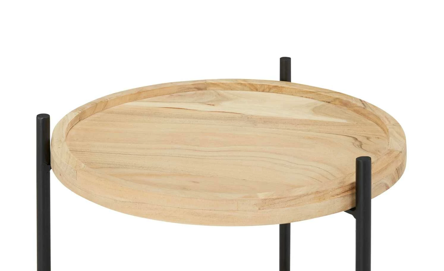 Der Beistelltisch Place greift den beliebten urbanen Loft-Stil gekonnt auf. Hier setzt schwarzes Metall einen bewussten Kontrast zu gebeiztem Akazienholz. Das robuste Dreifußgestell trägt die zwei runden Massivholzplatten mit einem Durchmesser von 43 Zentimetern. Die Tischplattenränder sind leicht erhöht, sodass Gegenstände nicht herunterrutschen. Die beiden Massivholzplatten sind gebeizt und wirken hell und freundlich. Dadurch kann der Beistelltisch Place in nahezu jeden Einrichtungsstil integriert werden.
