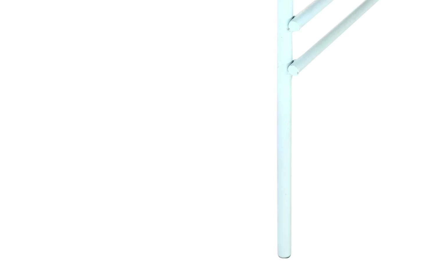 Ein A-förmiges Metallgestell in Türkis trägt die Tischplatte aus massivem Akazienholz. Die 45 x 45 Zentimeter große Holztischplatte wurde zum Schutz lackiert und besitzt ein attraktives smoked-Finish. Unser Tipp: Setzen Sie weitere Akzente mit der Möbelserie Talia. Frische Farben und junges, modernes Design zeichnen die Möbel der Serie aus.