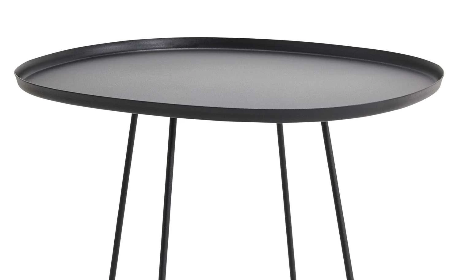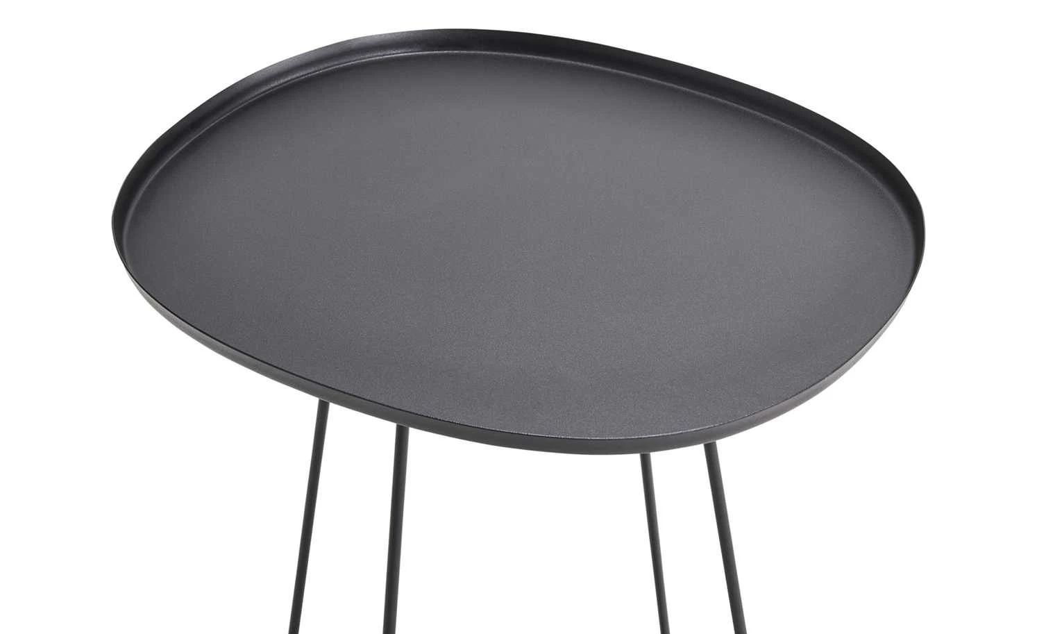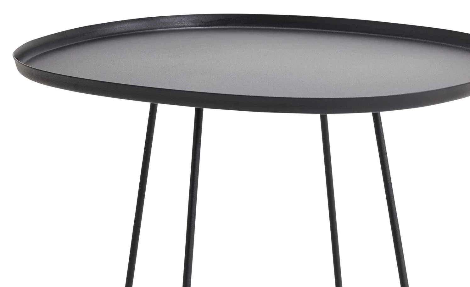 Einen angesagten Industrial-Look hat der Beistelltisch Valentino. Der gesamte Tisch ist aus stabilem Metall. Es ist pulverbeschichtet und hat einen matten Farbton in Schwarz. Die runde Tischplatte verfügt über einen leicht erhöhten Rand.