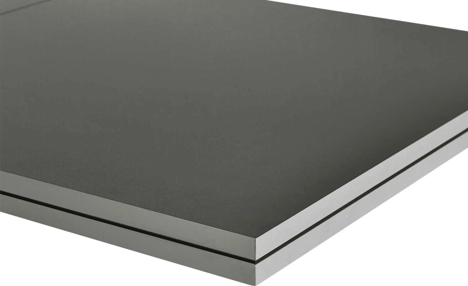 - Mehr zum Material: Bodenplatte: Aluminium, Tischplatte: HPL (High Pressure Laminate)