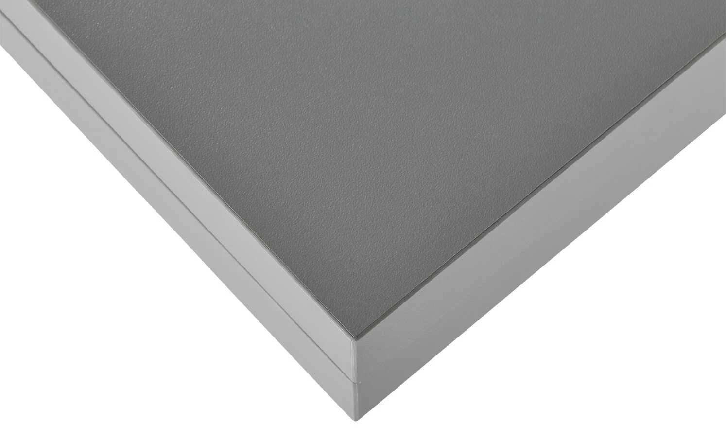 - Mehr zum Material: Tischplatte: HPL (High Pressure Laminate), Bodenplatte: Aluminium