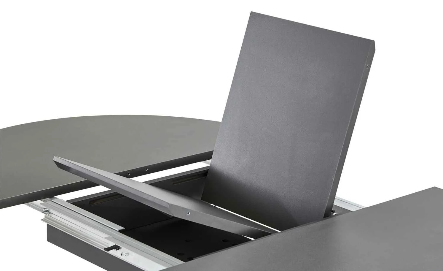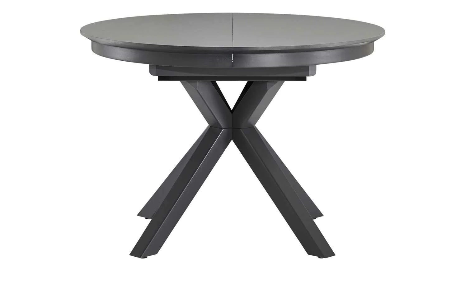 Die Marke Berger & Rath steht für formvollendetes Design und hohe Qualität. Das beste Beispiel: Der Esstisch Xeno. Die Oberflächen von Xeno sind matt lackiert und schimmern in einem edlen Anthrazit-Ton. Die runde Tischplatte bietet bei einem Durchmesser von 110 Zentimetern ausreichend Platz für bis zu vier Personen. Durch eine integrierte Klappeinlage kann Xeno um zwei Plätze erweitert werden. Der eingebaute Synchronauszug ist leicht zu bedienen und verlängert die Tischfläche auf 155 Zentimeter. Im Gegensatz zu anderen Säulentischen wirkt Xeno durch seine spezielle Tischbeinform geradezu zierlich. Der ausziehbare Esstisch lässt sich mit zahlreichen Einrichtungsstilen kombinieren.