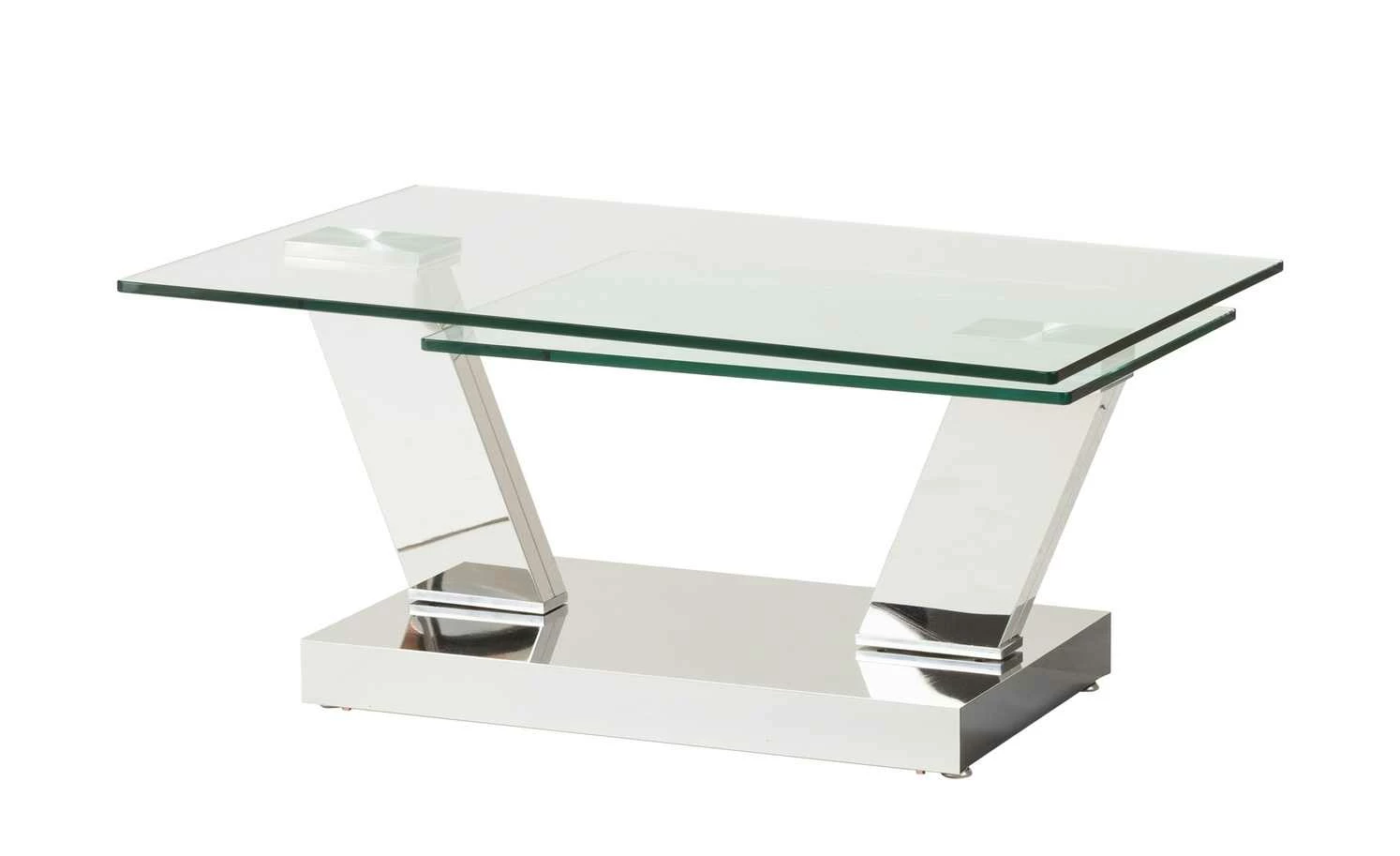 Die Materialwahl aus poliertem Edelstahl und Glas ergeben bei diesem Couchtisch Budelli einen eleganten und puristischen Look. Einen futuristischen Eindruck erhält man durch seine besondere drehbare Funktion. Die zwei Tischplatten werden synchron gedreht und können stufenlos ausgerichtet werden, wobei der Verstellmechanismus sehr leichtgängig ist. Die größere, obere Tischplatte kann dabei die kleinere überlagern, oder gar komplett verdecken. Sie entscheiden selbst, wie viel Fläche Sie benötigen. Das macht diesen Couchtisch Budelli nicht nur vielseitig in der Anmutung, sondern auch komfortabel und flexibel in der täglichen Anwendung in Ihrem Zuhause.