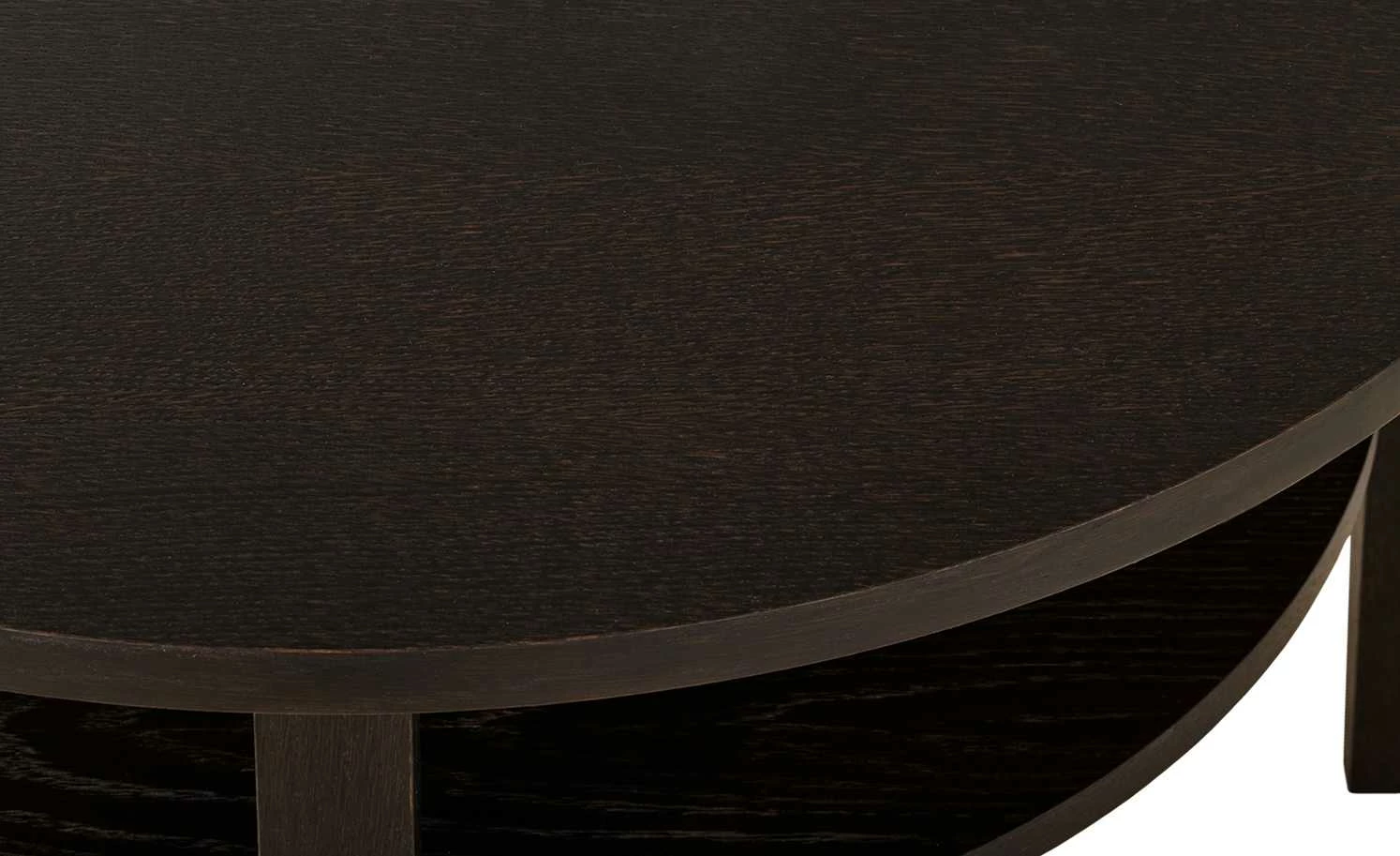 Der Couchtisch Haiti überzeugt mit seinem eleganten und zugleich natürlichen Design. Tischplatte und Ablage sind rund und werden von vier schlanken Beinen getragen. Haiti ist aus Mooreiche gefertigt. Sie hat einen sehr dunklen Farbton und eine attraktive Maserung. Während für Tischplatte und Ablage Mooreichenfurnier verwendet wurde, ist für das Gestell Massivholz verwendet worden.