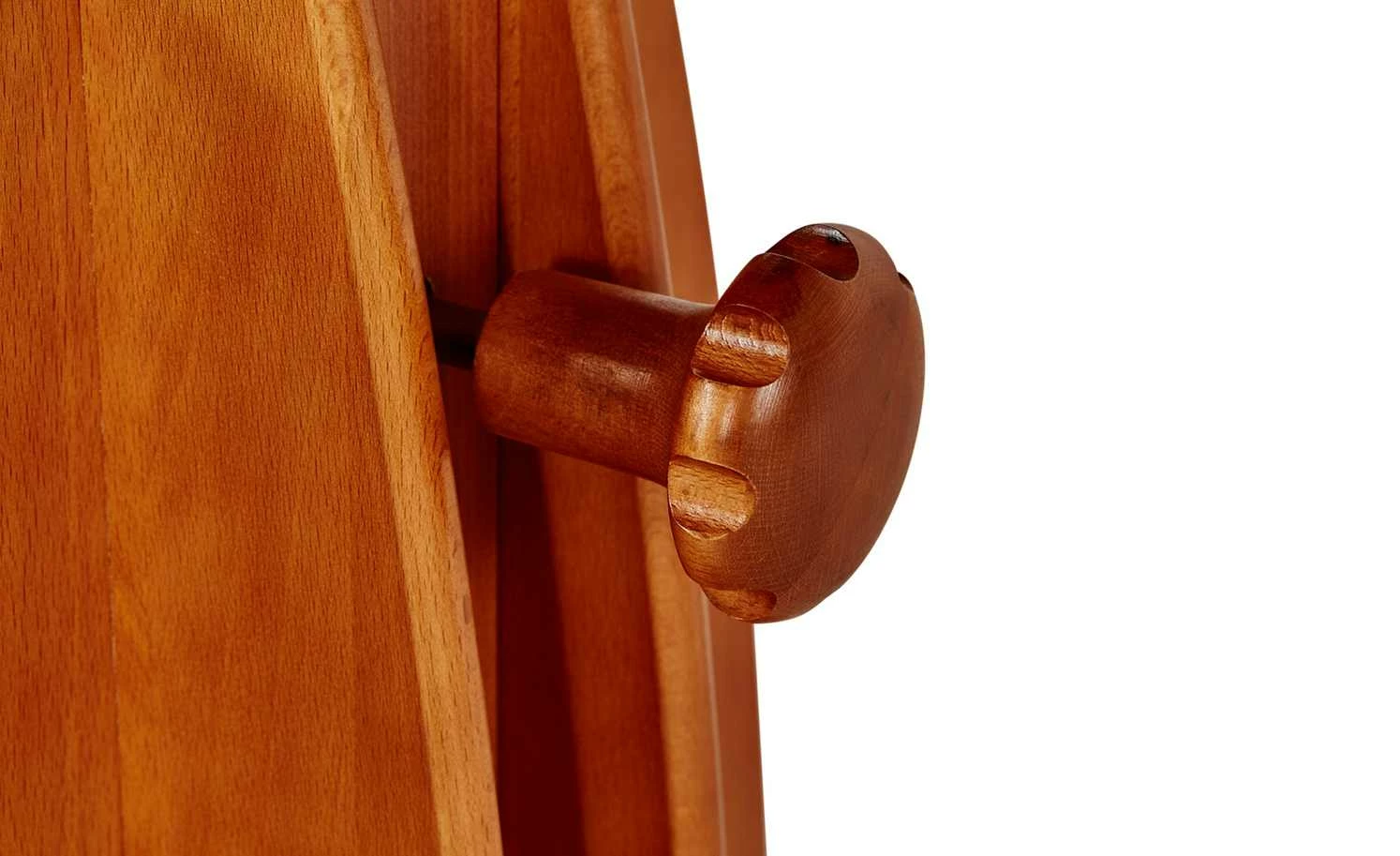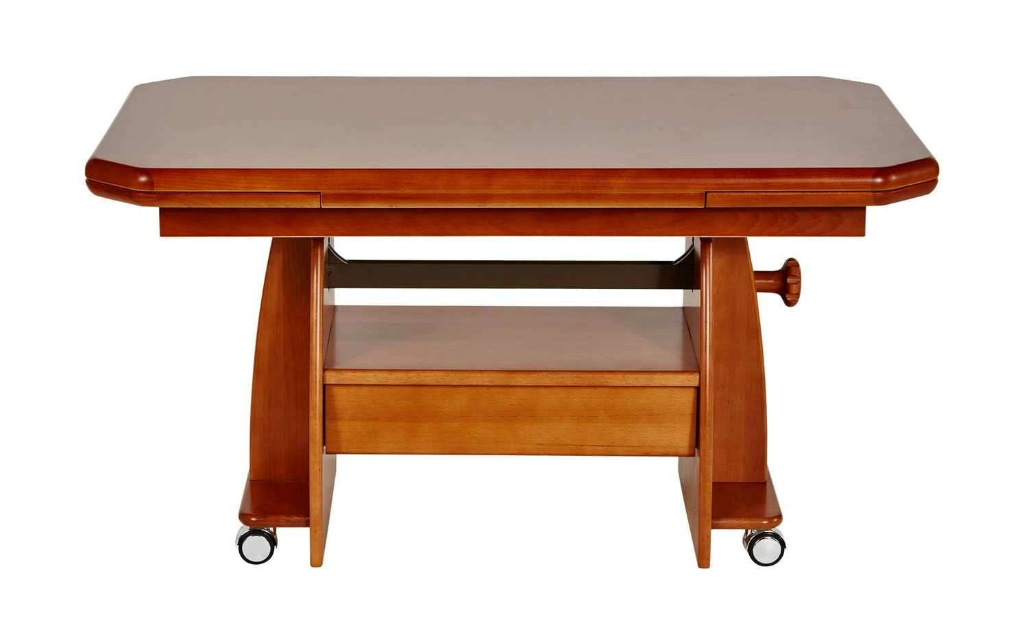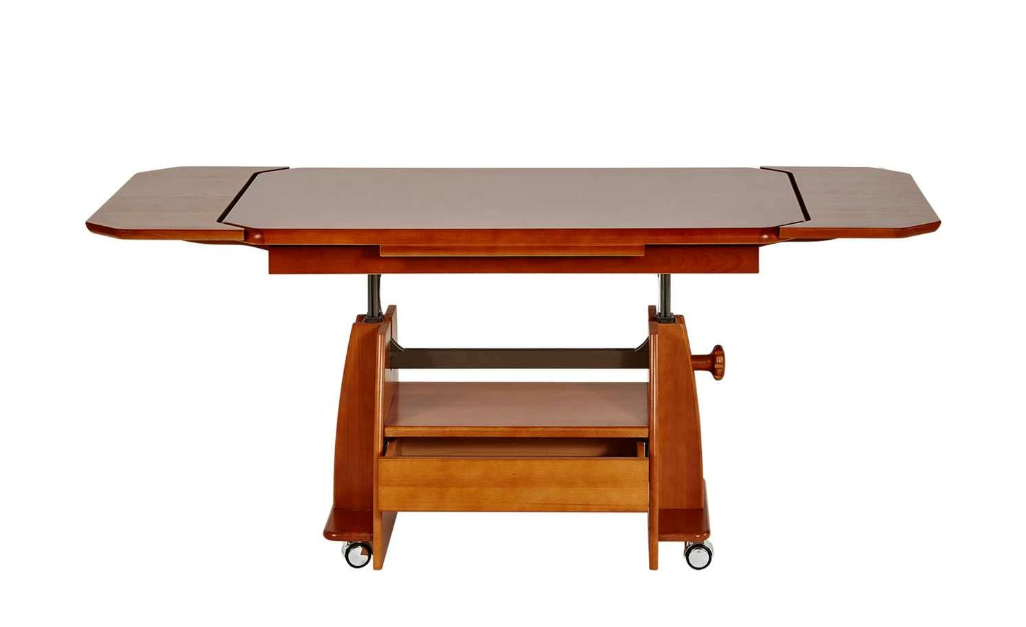 Der Couchtisch Hamal lässt sich auf Ihre Bedürfnisse anpassen. Durch die Rollen können Sie ihn einfach dorthin bewegen, wo Sie ihn brauchen. Die Höhe des Tisches lässt sich von 55 bis 65 Zentimeter variieren. Die Verstellung erfolgt händisch – und zwar mithilfe eines Knopfes unterhalb der Tischplatte. Die Tischplatte selbst kann von 110 auf 160 Zentimeter Länge ausgezogen werden. Hamals besteht aus Buchenholz. Während für die Tischplatte ein Furnier verwendet wurde, besteht das Gestell aus massiver Buche. Das Holz ist gebeizt und lackiert worden, wodurch es eine schöne Kirschbaumoptik erhalten hat.