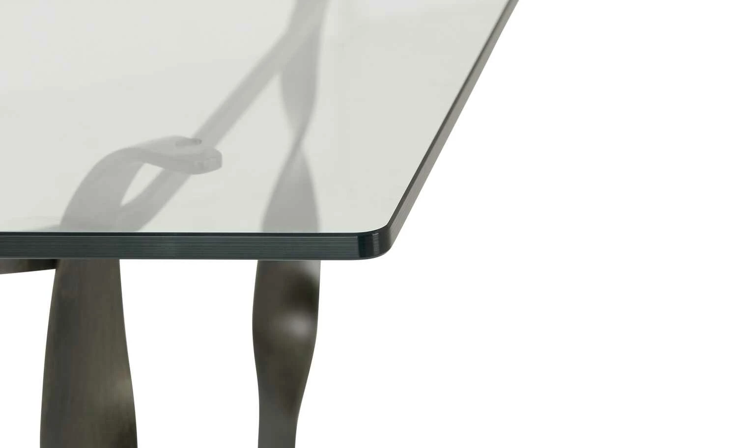 - Mehr zum Material: Material Gestell: Stahl, brüniert, Tischplatte 10mm stark, Einscheibensicherheitsglas