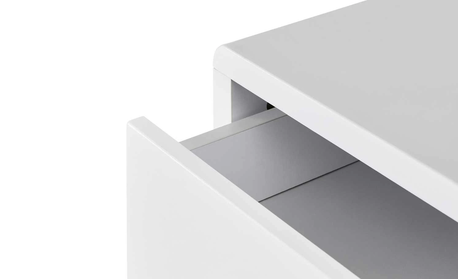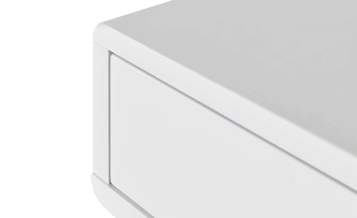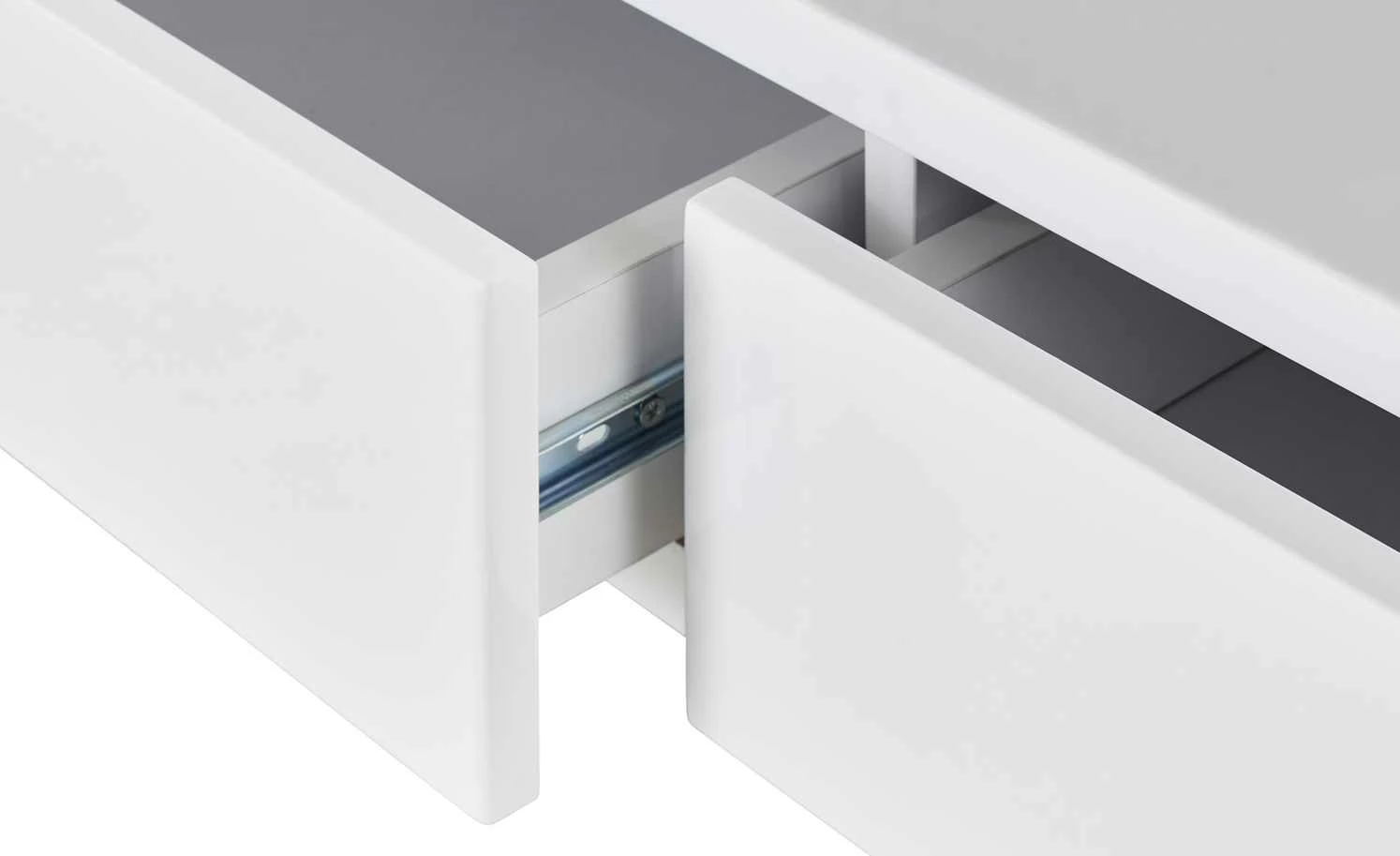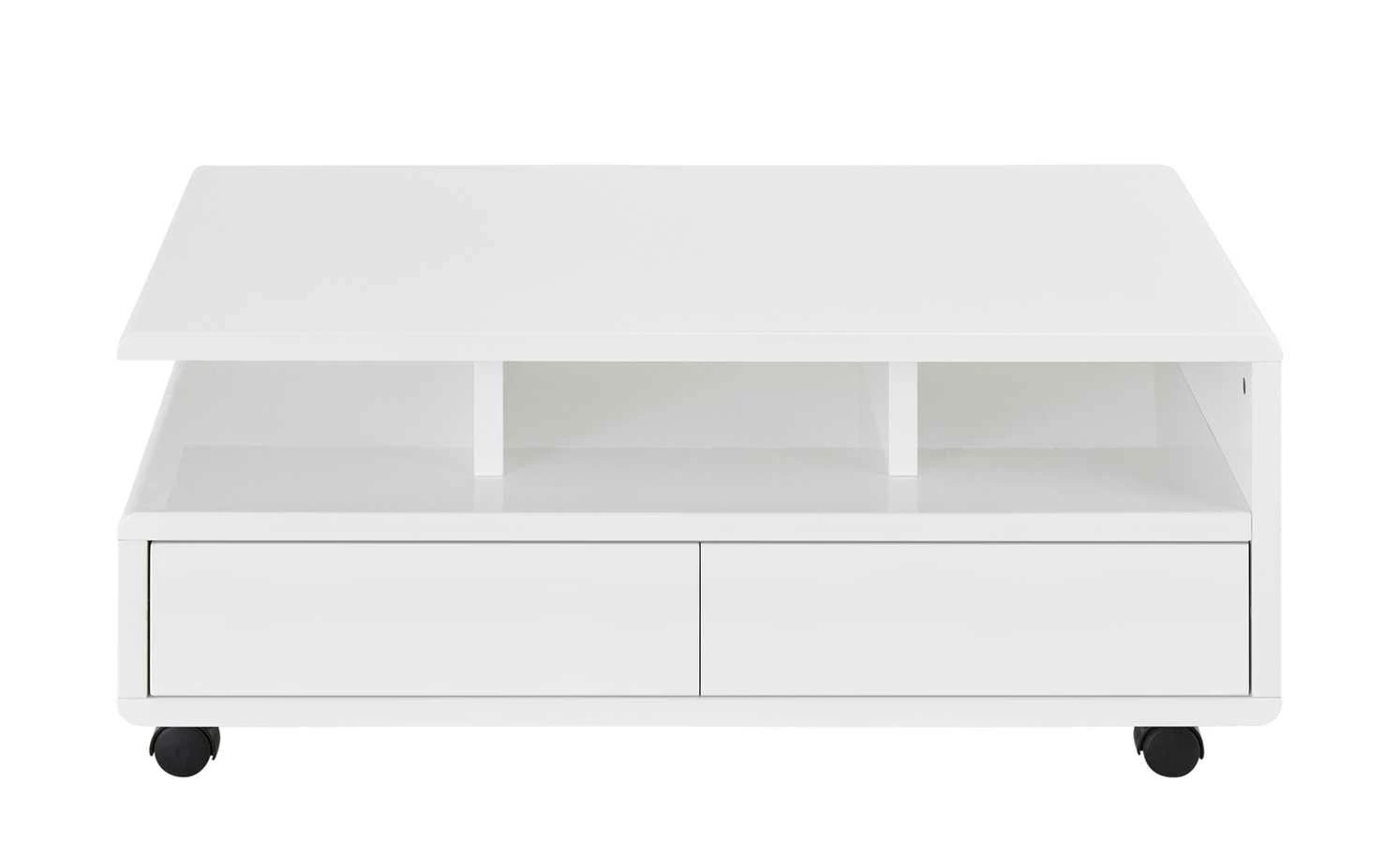 Stauraum, Tisch und flexibel beweglich – das ist der Couchtisch Maui. Unterhalb der rechteckigen Tischplatte gibt es drei offene Fächer. Weiterer Stauraum befindet sich in den beiden großen Schubladen. Sie öffnen durch die Push-to-Open-Funktion. Statt fester Füße ist der Tisch mit vier Rollen ausgestattet. Sie ermöglichen es Ihnen, den Tisch leicht zu bewegen. Das moderne Design und der lackierte Weißton machen Maui auch optisch zum Highlight.