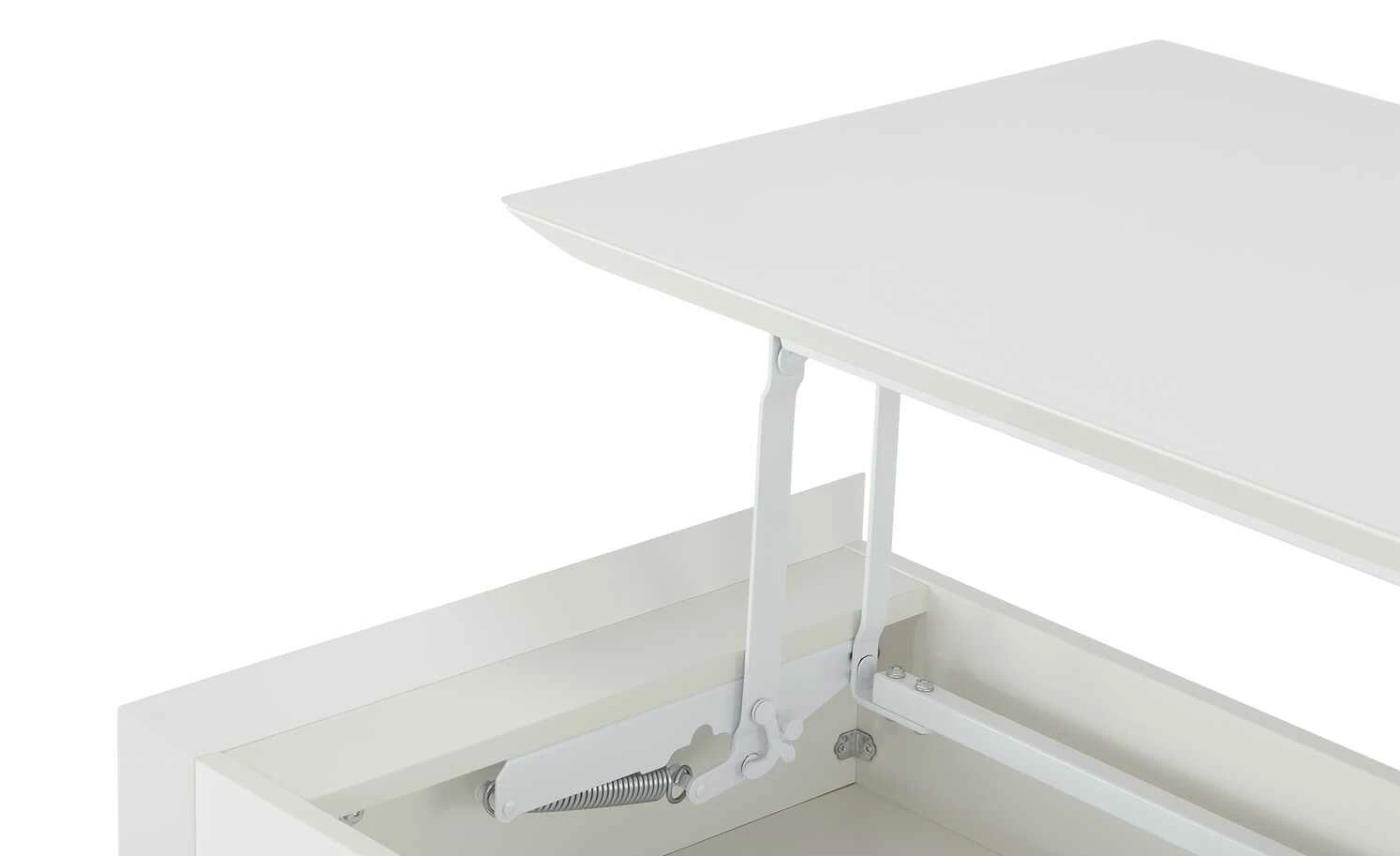Ein kleines Multitalent ist der Couchtisch Capri. In Sekunden können Sie die Tischhöhe ganz einfach von 46 Zentimetern auf 70 Zentimeter ändern. Dann hat die Tischplatte eine angenehme Höhe zum Arbeiten an Laptop, Tablet und Co. Mit der Liftfunktion ist das Verstellen der Tischplatten kinderleicht. Unter der höhenverstellbaren Tischplatte finden außerdem Magazine und Fernbedienungen Platz. Durch sein schlichtes Design und der zeitlosen Farbe fügt sich der Couchtisch Capri in nahezu jeden Raum problemlos ein.