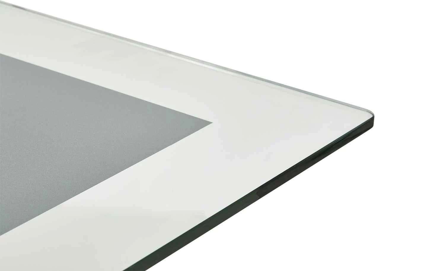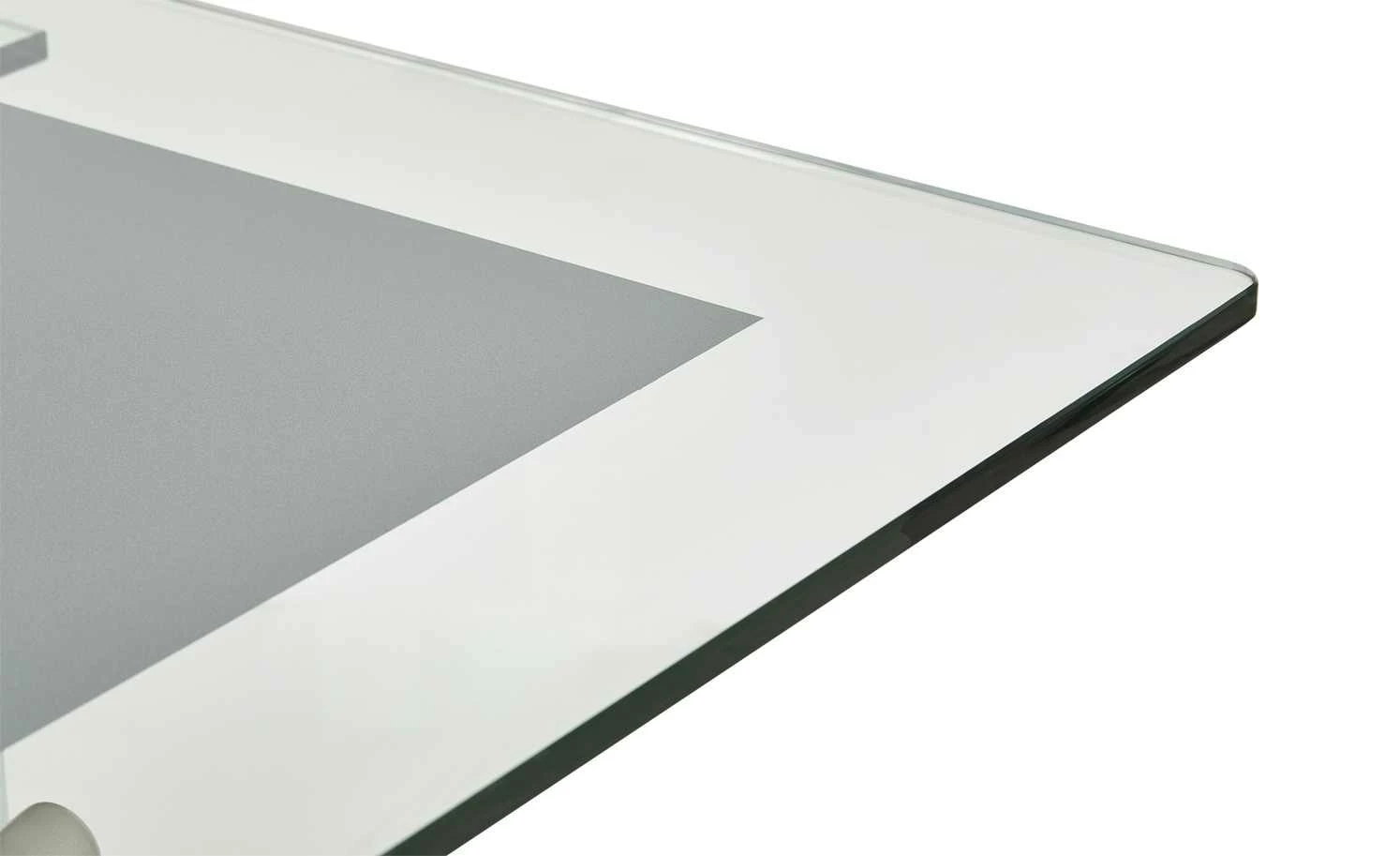 - Mehr zum Material: Gestell: Klarglas, 19 mm, Stahlgestell: lackiert, Tischplatte: Sicherheitsglas, 10 mm
