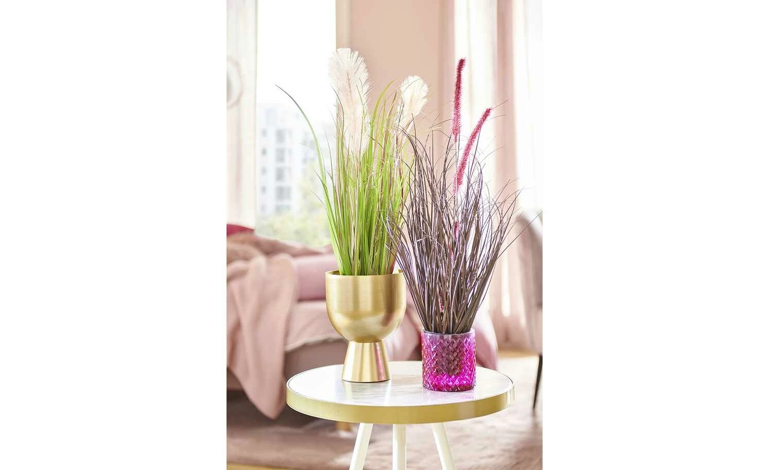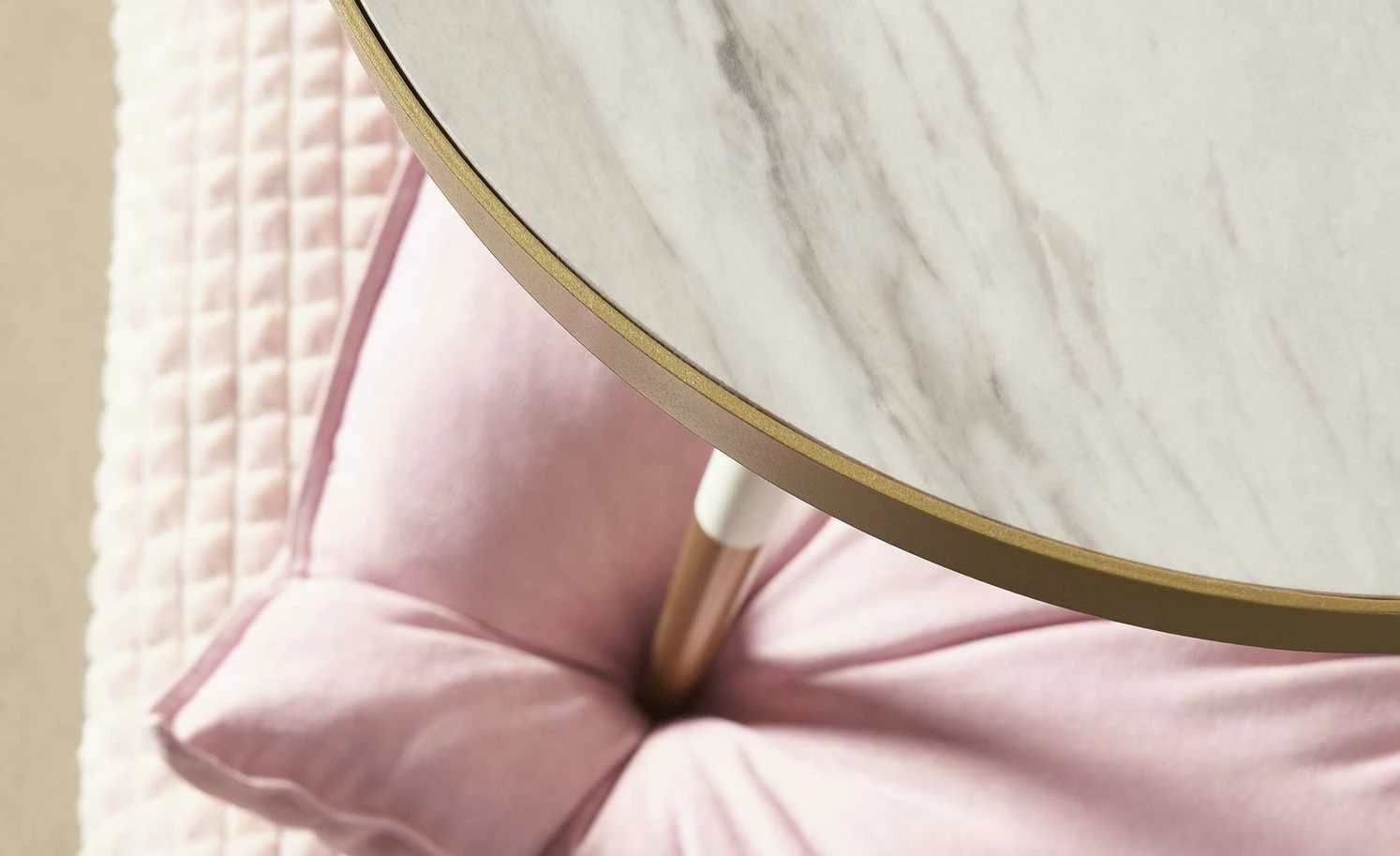 - Mehr zum Material: Tischplatten-Rahmen und Gestell-Absetzung: Metall, goldfarbig lackiert