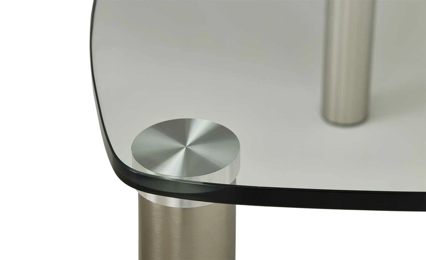 - Mehr zum Material: Oberplatte: melaminbeschichtet, Ablageplatte: ESG-Glas (12 mm dick)