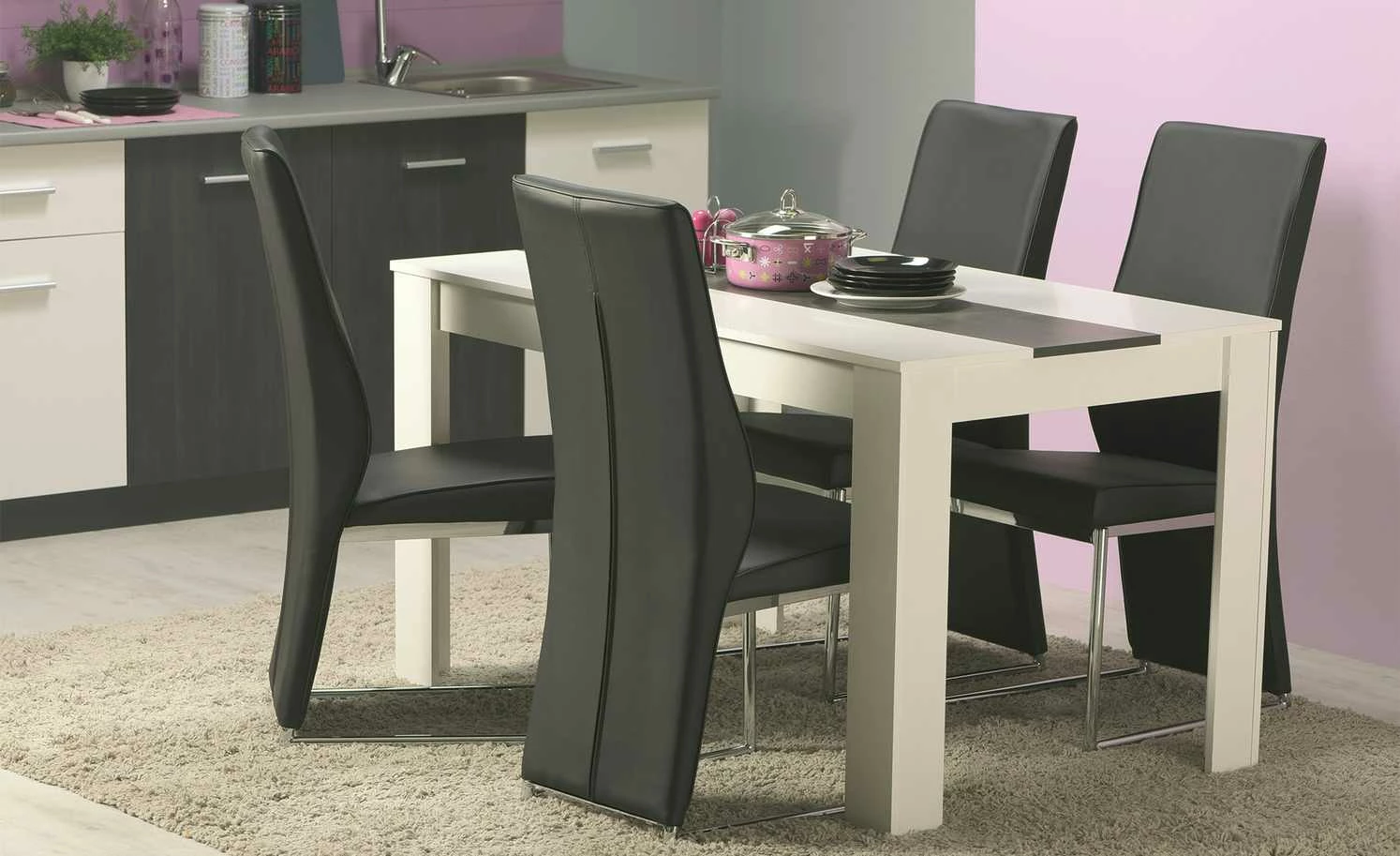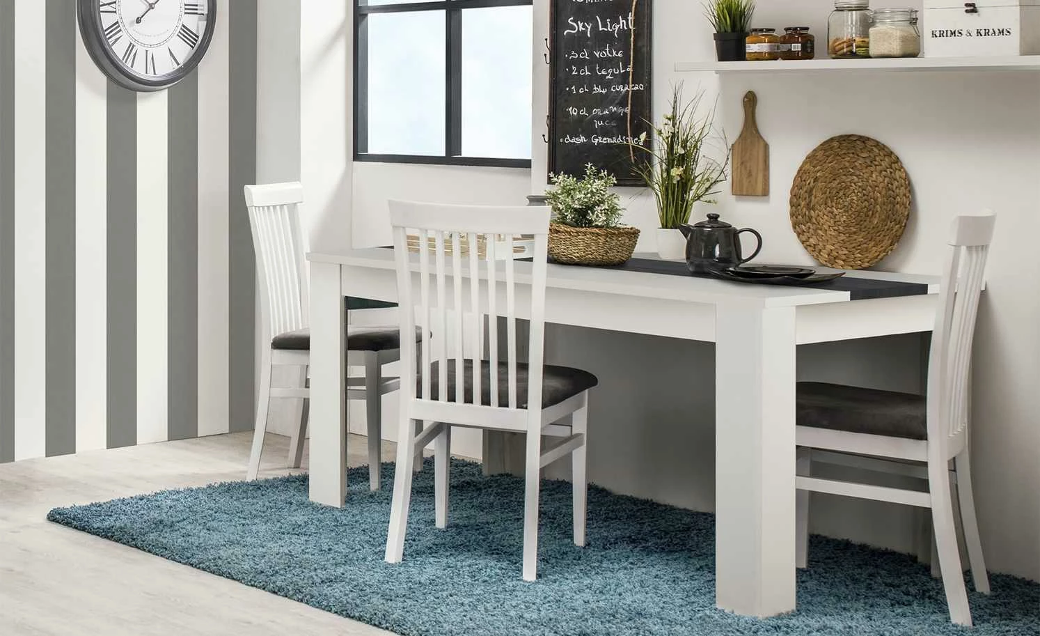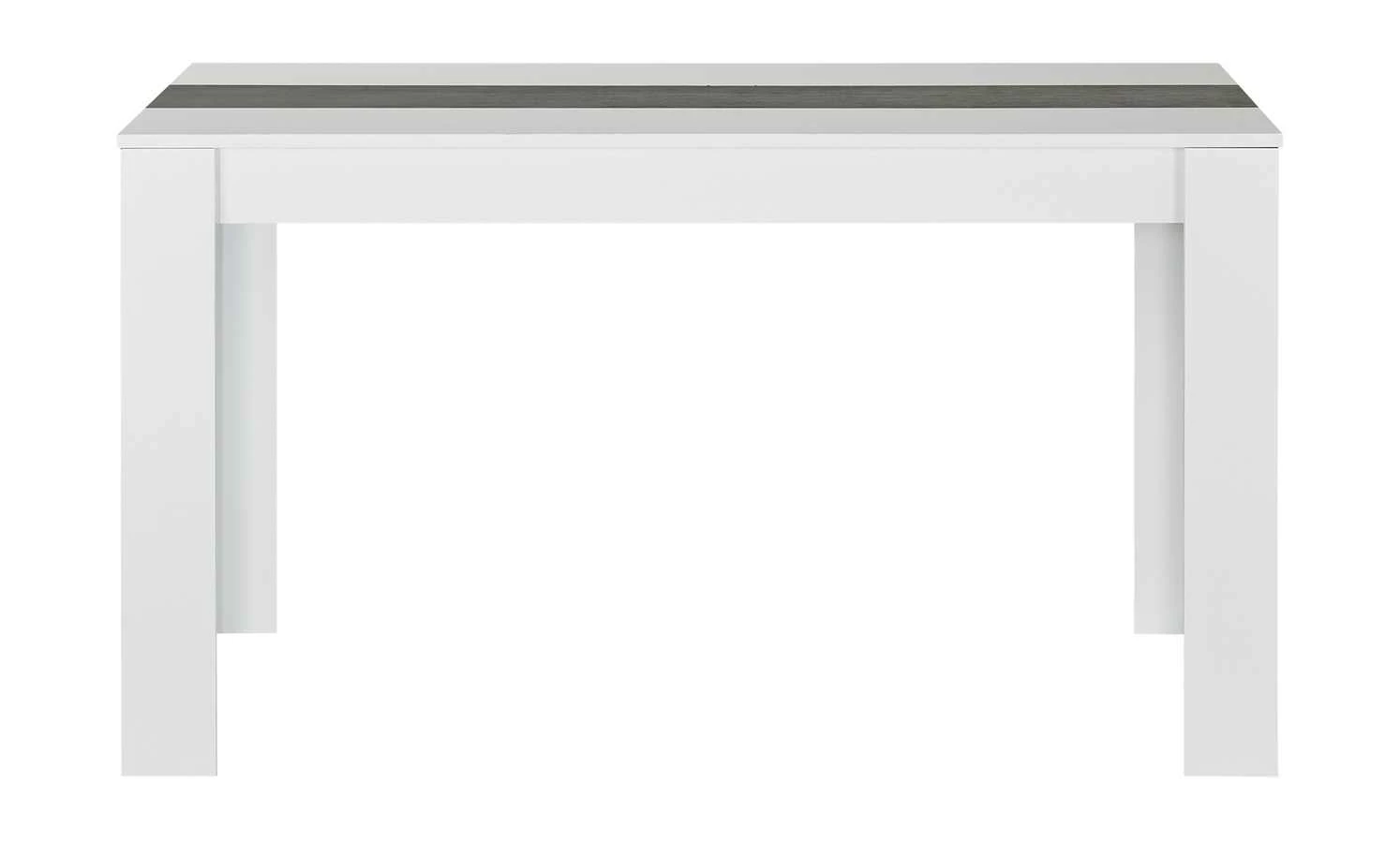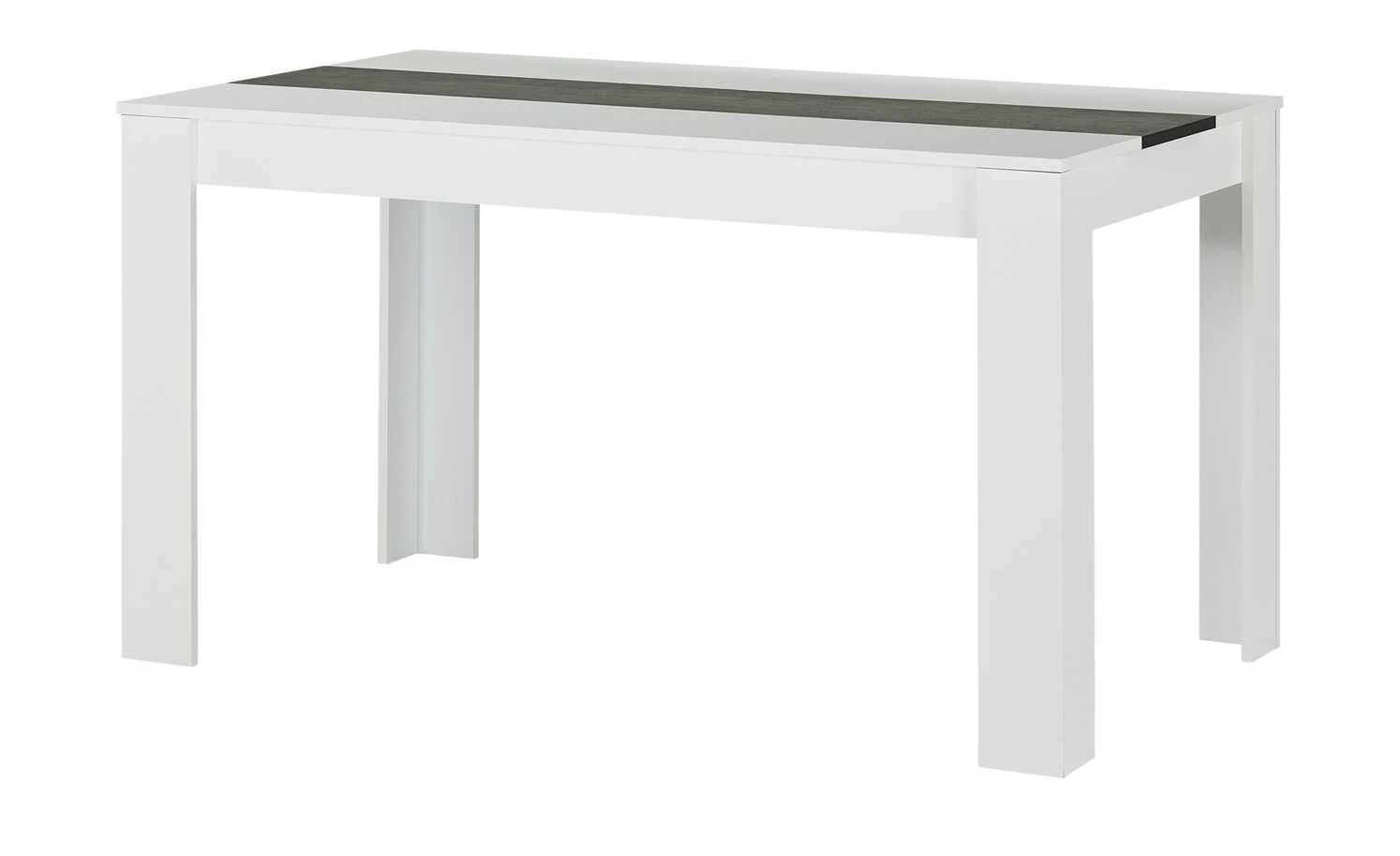Bis zu acht Personen können am Esstisch Amin einen Platz finden. Tischplatte und Gestell sind stabil gearbeitet und haben eine folierte Oberfläche. Sie ist unempfindlich und leicht zu pflegen. Das attraktive Weiß wird bei der Tischplatte mittig in Schwarz abgesetzt. Ein toller Kontrastakzent.