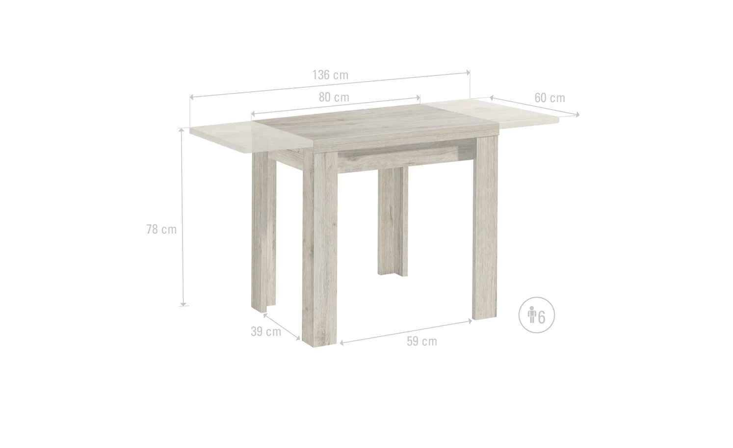 - Maße der Tischplatte (LxB): 80 x 60 cm