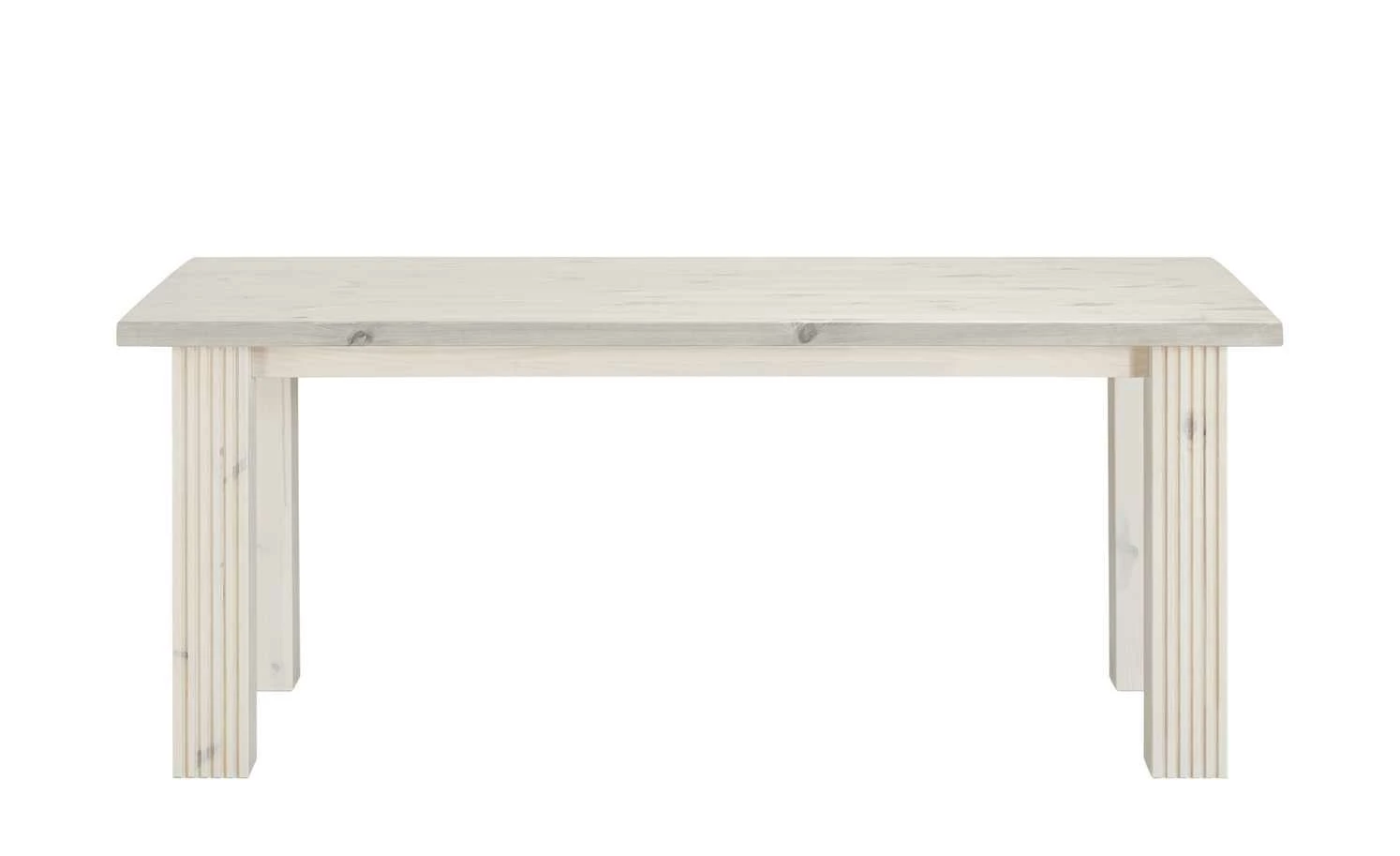 Mit seinem rustikalen Landhauscharme ist der Esstisch Bornholm ein Blickfang für den Essbereich. Bornholm besteht – wie auch die anderen Möbel der Serie – aus massivem Kiefernholz. Die typische Holzmaserung ist sehr gut zu erkennen. Diese natürliche Note passt wunderbar zum Landhauslook. Die vier stabilen Tischbeine sind mit vertikalen Rillen verziert.
