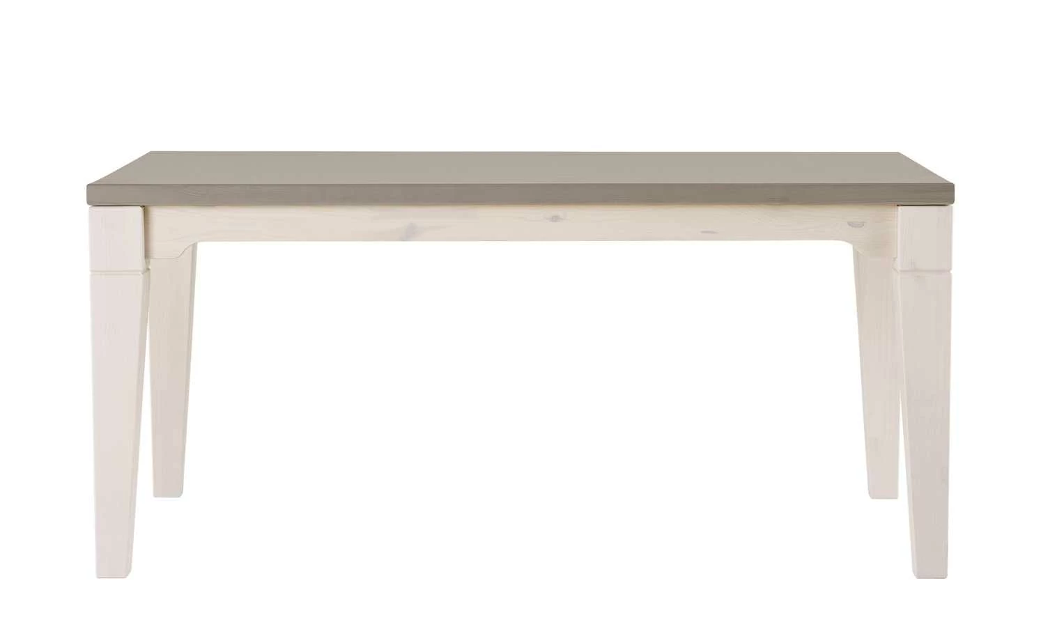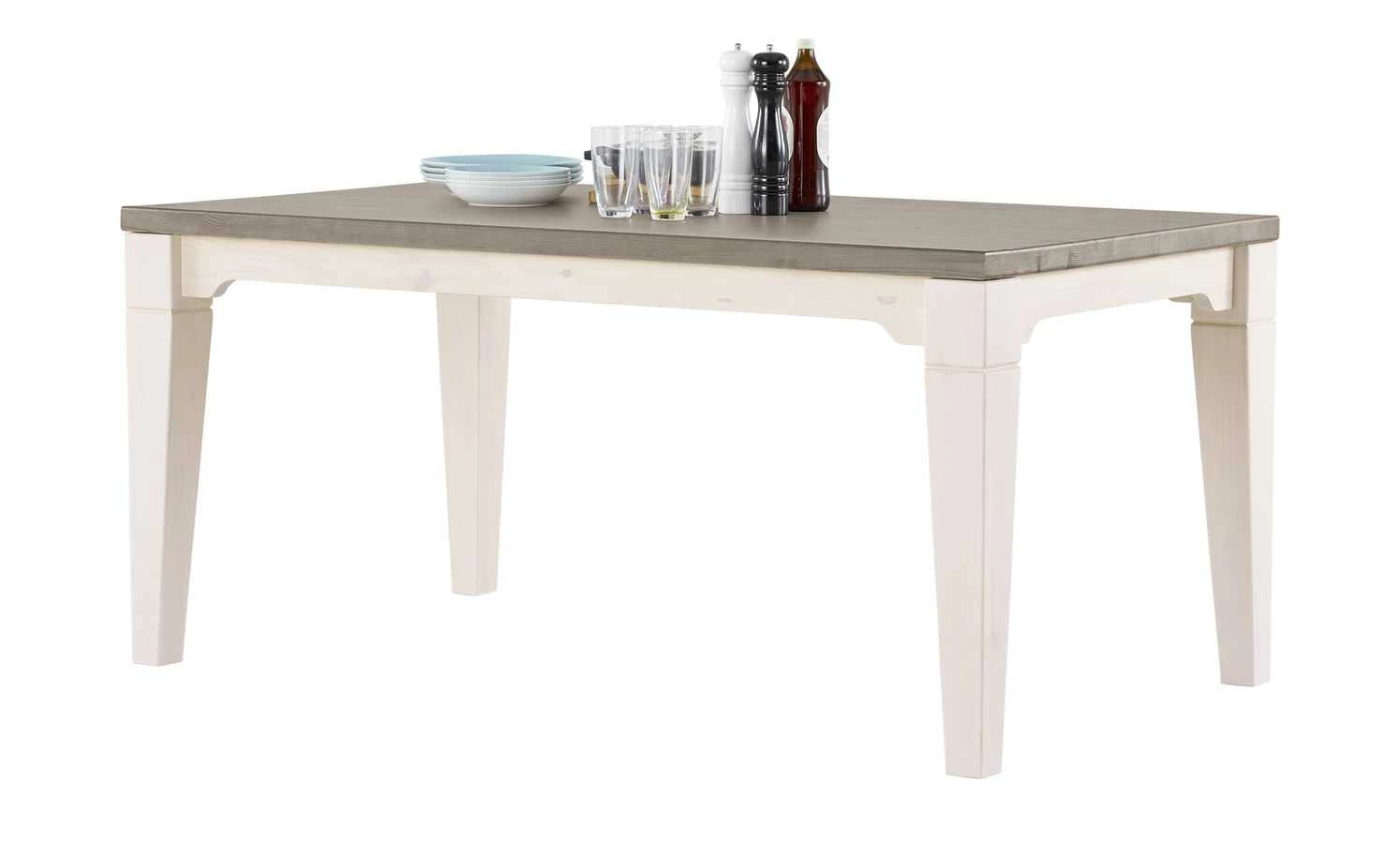 Speisen wie zu Großmutters Zeiten auf dem Land: Der Esstisch Bornholm besticht durch seinen rustikalen, aber dennoch wohlgeformten Landhausstil. Durch die Verwendung von massivem Kiefernholz ist der Tisch stabil und langlebig. Das Tischgestell ist in einem freundlichen Weiß gehalten, die Struktur des Holzes ist aber dennoch sehr schön zu erkennen. Farblich dazu abgesetzt ist die Tischplatte in Kiefer lavafarben. Bei einer Größe von 120 Zentimetern können Sie bis zu sechs Personen am Tisch platzieren.