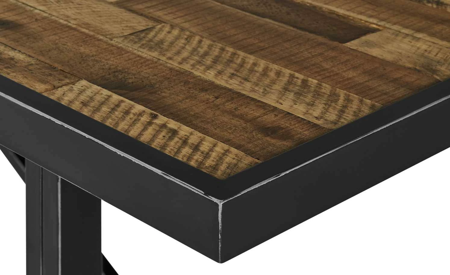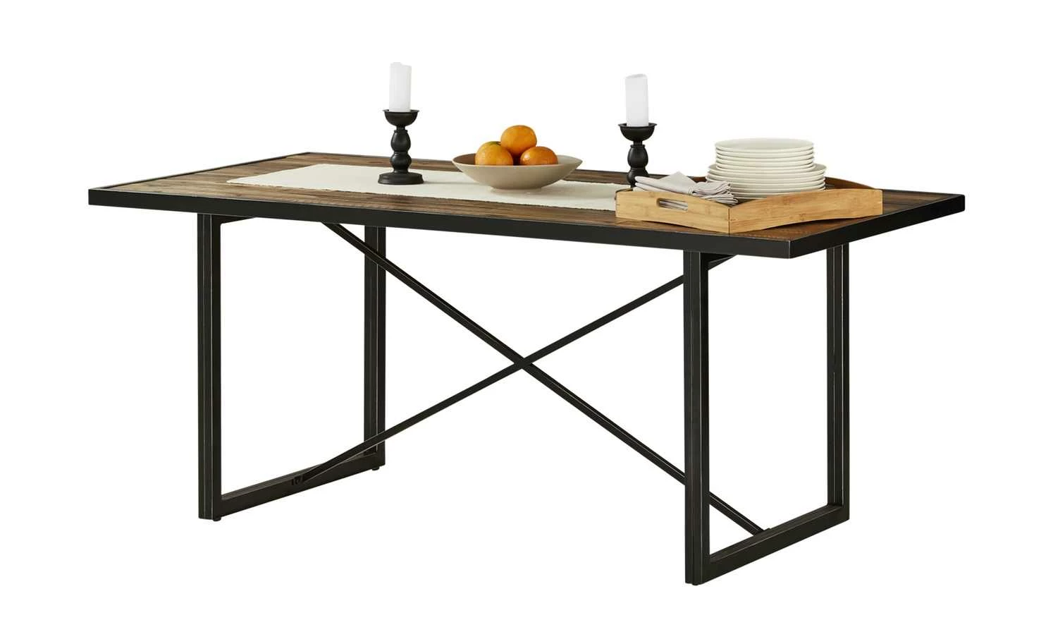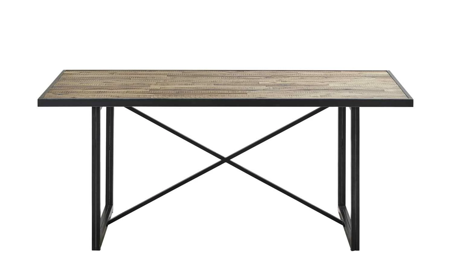 An diesem Tisch nimmt man gerne Platz: Der Esstisch Brooklyn von Love it ist im angesagten Industrial-Look designt. Die Tischplatte in 180 x 90 cm ist mit Akazienholz furniert. Für einen auffälligen Eyecatcher-Effekt ist das Holz gebeizt worden. Gestell und Tischplattenumrandung bestehen aus pulverbeschichtetem Metall. Seine graue Farbe ist mit gewollten Abnutzungen versehen. Die Kufen sorgen für einen soliden Stand, sind aber zusätzlich durch Querstreben verbunden. Das verbessert die Stabilität und setzt zusätzliche Akzente.