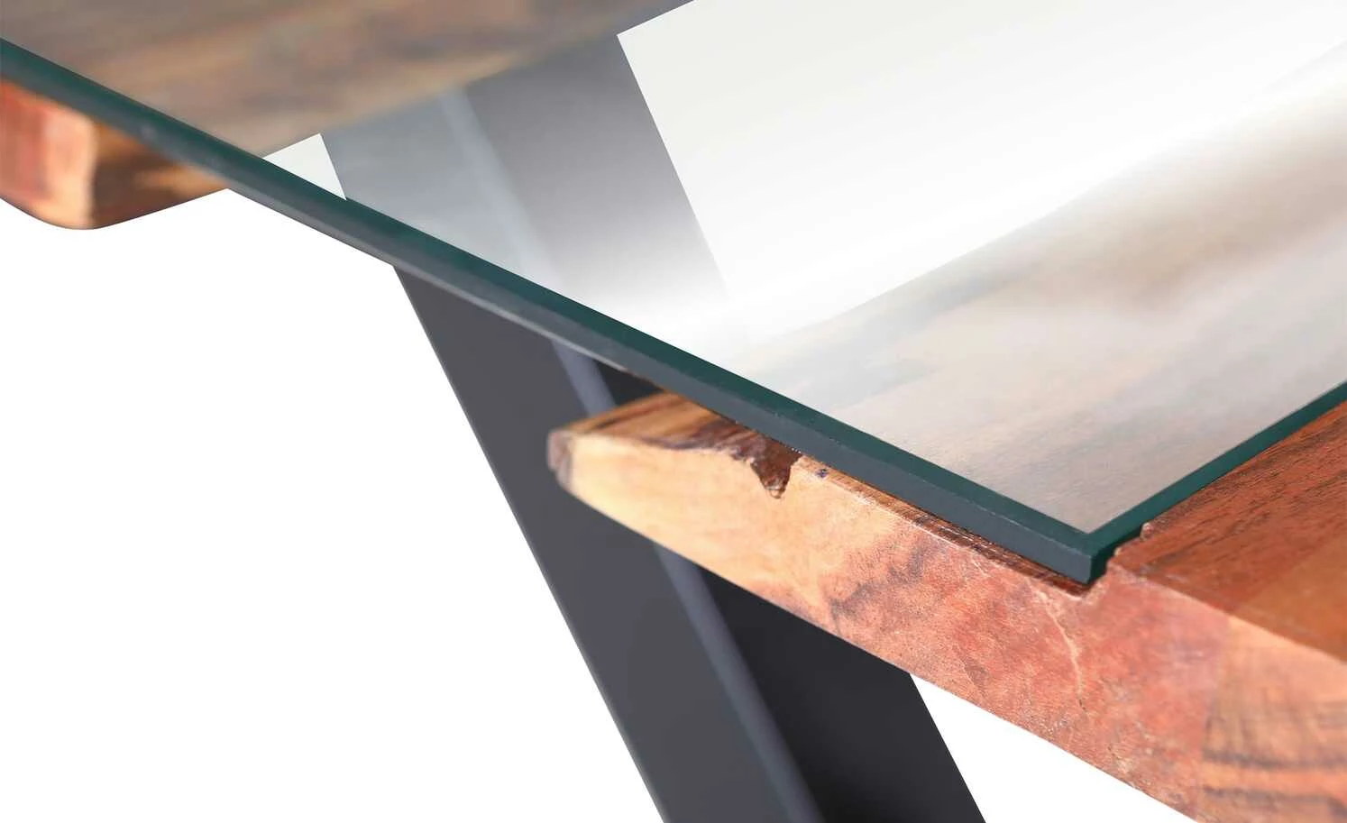 - Mehr zu Ausstattung / Funktion: Tischplatte mit eingelegtem Sicherheitsglas , mit echter Baumkante