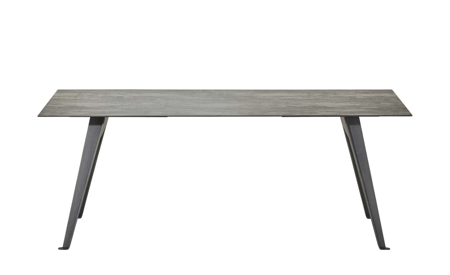 Keramik ist ein tolles Material – auch für Möbel. Beim Design-Esstisch Sato besteht die Tischplatte aus hochwertiger dunkelgrauer Keramik. Die Oberfläche changiert in diversen Farbnuancen, was einen tollen Effekt ergibt. Das Gestell ist aus lackiertem Stahl. Die vier Beine sind leicht schräg gestellt, um den Stand des Tisches noch stabiler zu machen.