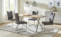 - Mehr zum Material: Gestell aus Edelstahl gebürstet, Tischplatte aus Charakter Eiche massiv geölt