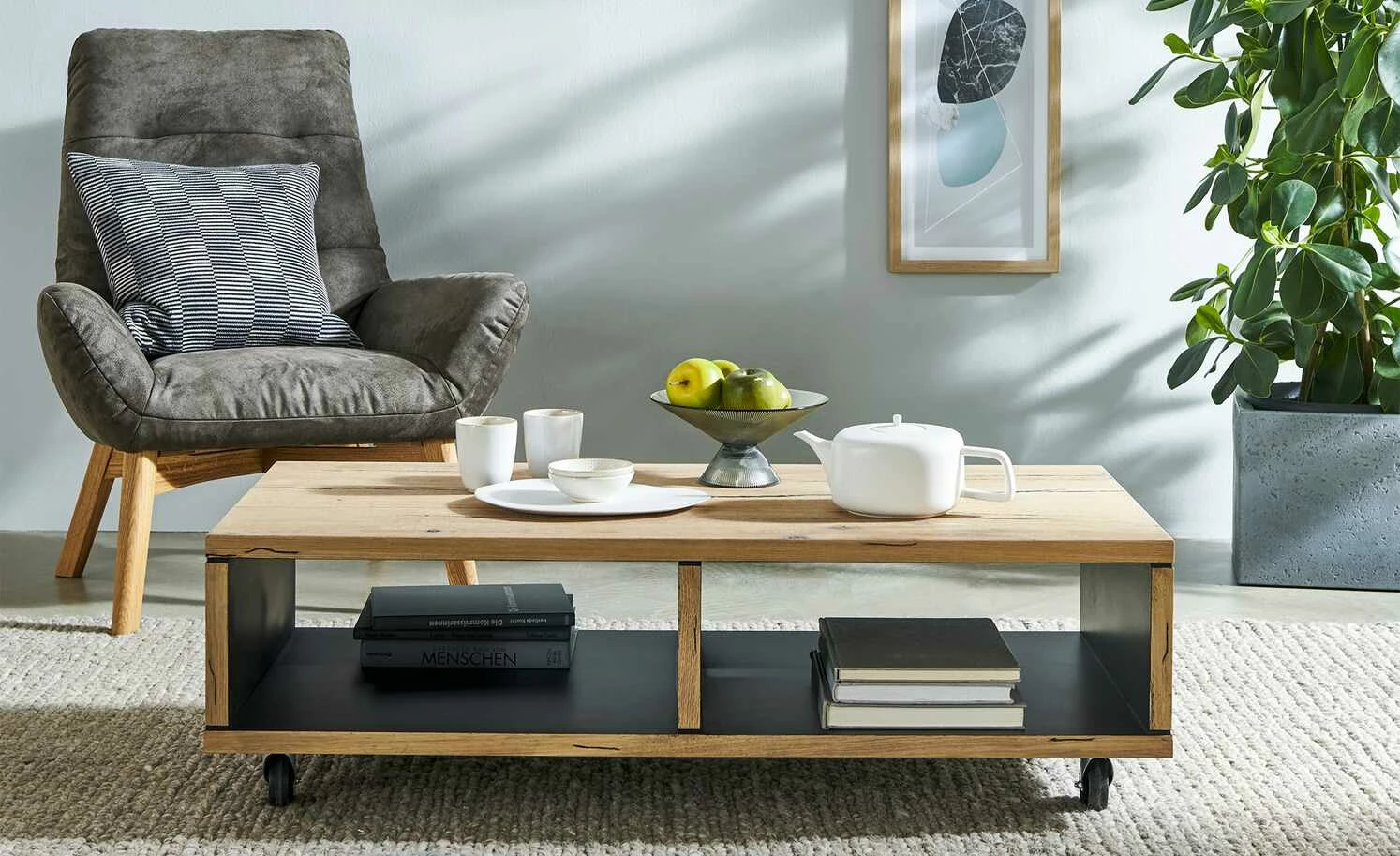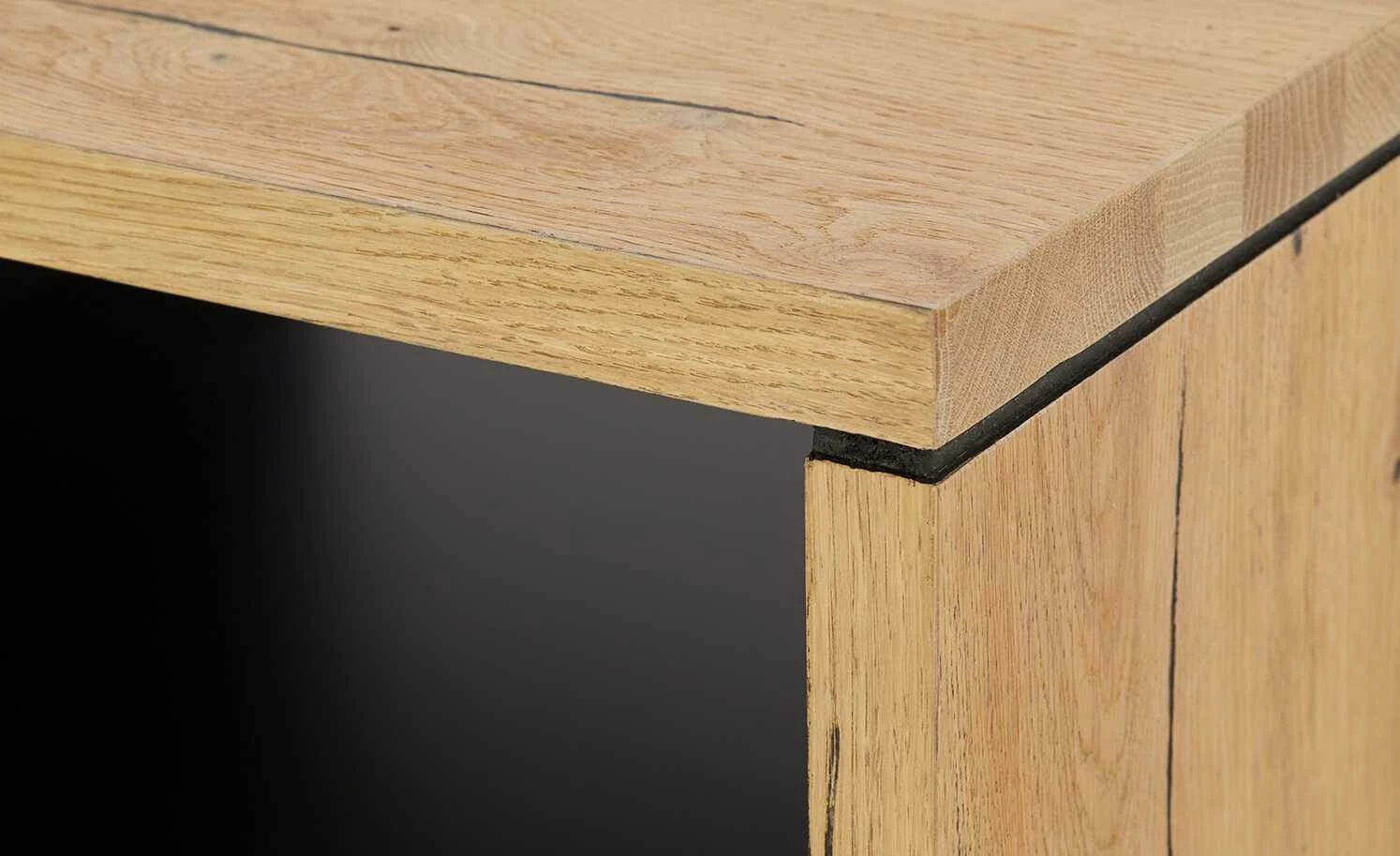 - Mehr zum Material: Korpus aus Eiche furniert in Vintage Smoked oak, Innenseite Schwarz lackiert