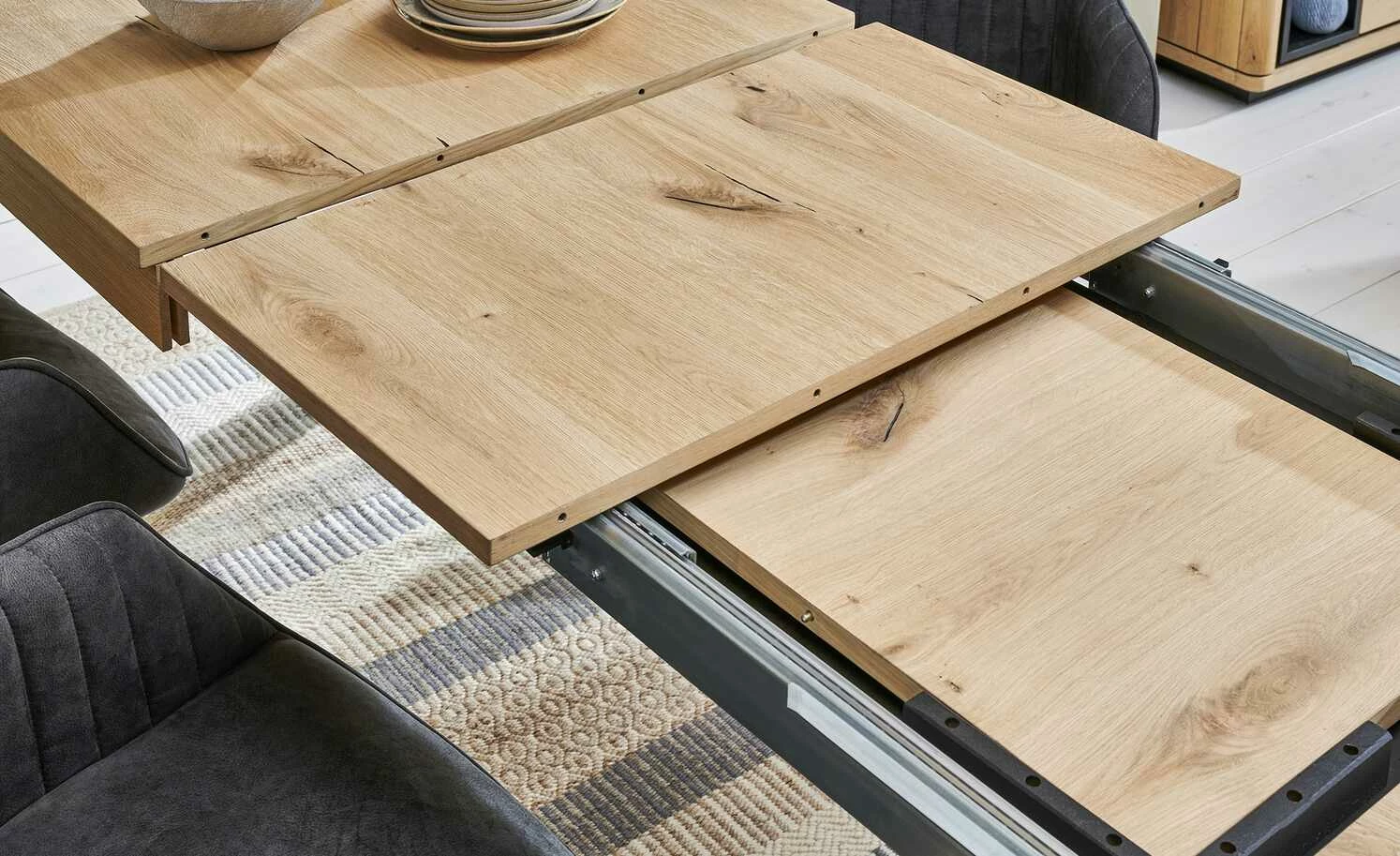 - Mehr zu Ausstattung / Funktion: Synchronauszug mit 2 innenliegenden Einlegeplatten à ca. 50 cm