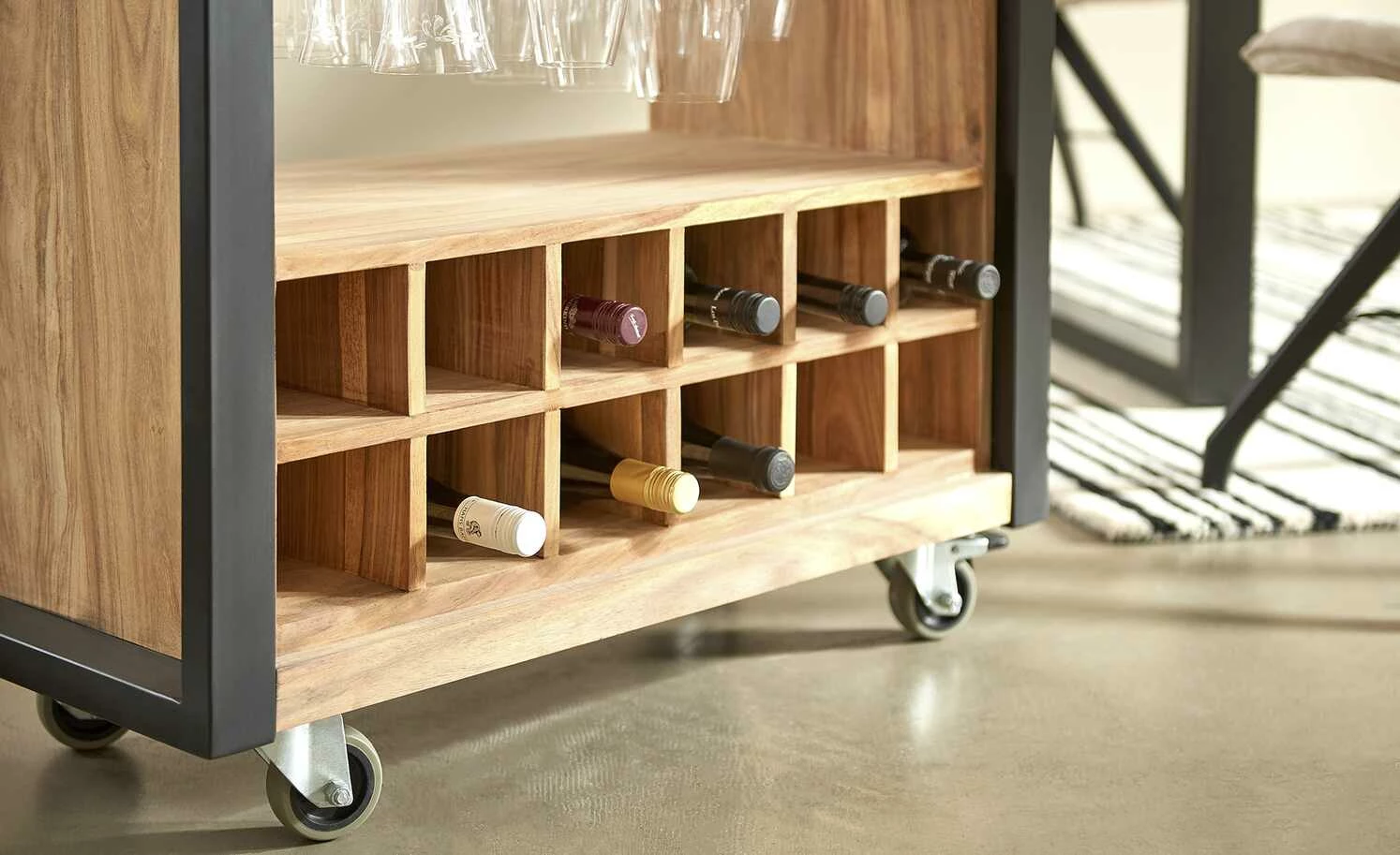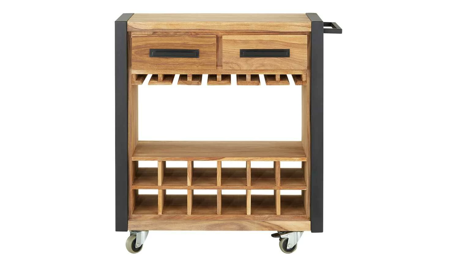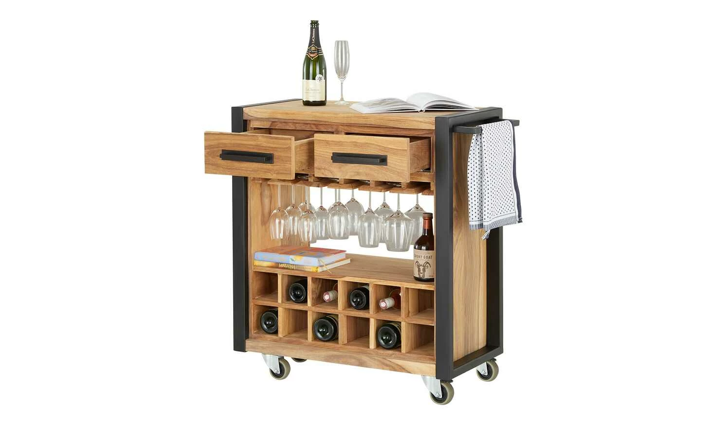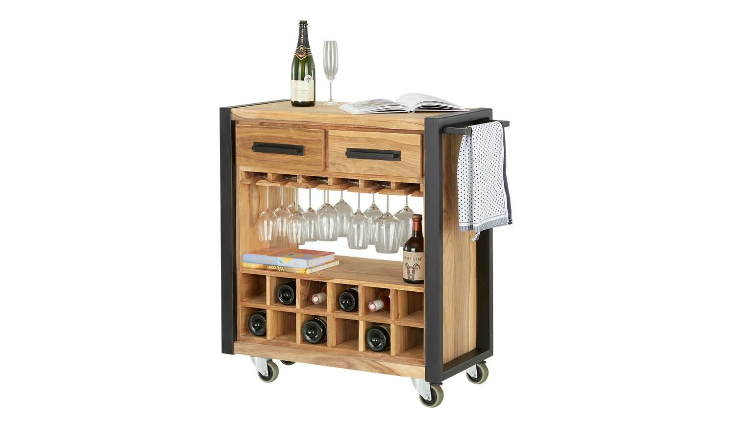 - Mehr zu Ausstattung / Funktion: 6 Halterungen für Weingläser, Rollen auf der Seite des Griffes haben eine Bremse, 12 Flaschenfächer, Griff / Handtuchhalter auf der rechten Seite