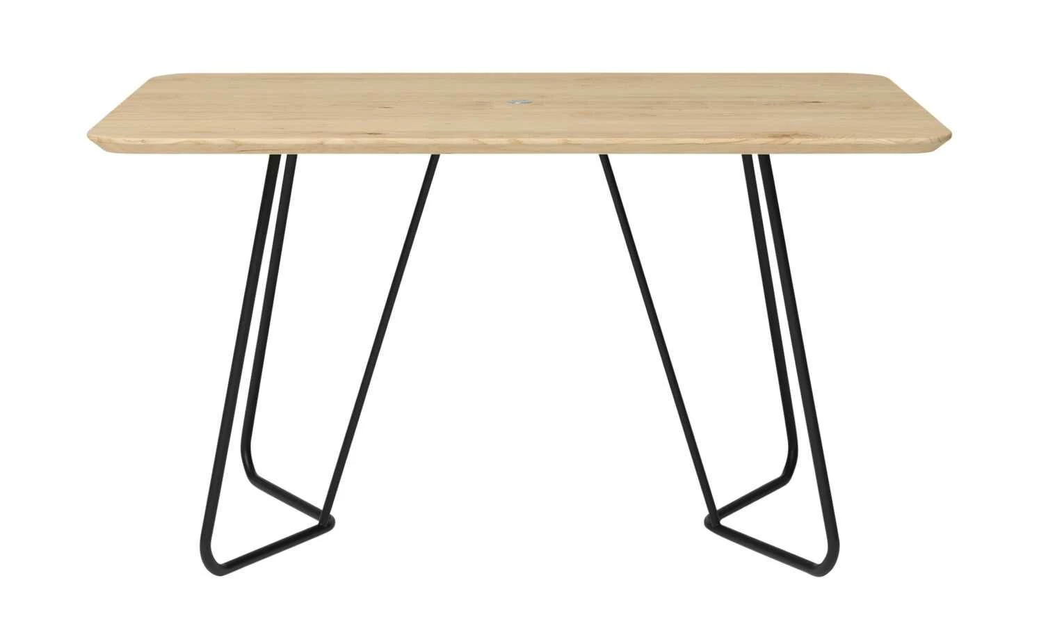 - Mehr zum Material: Tischplatte: Wildeiche natur (Furnier), Gestell: Metall Schwarz strukturiert, Oberflächenfinish Tischplatte: Wachseffektlack