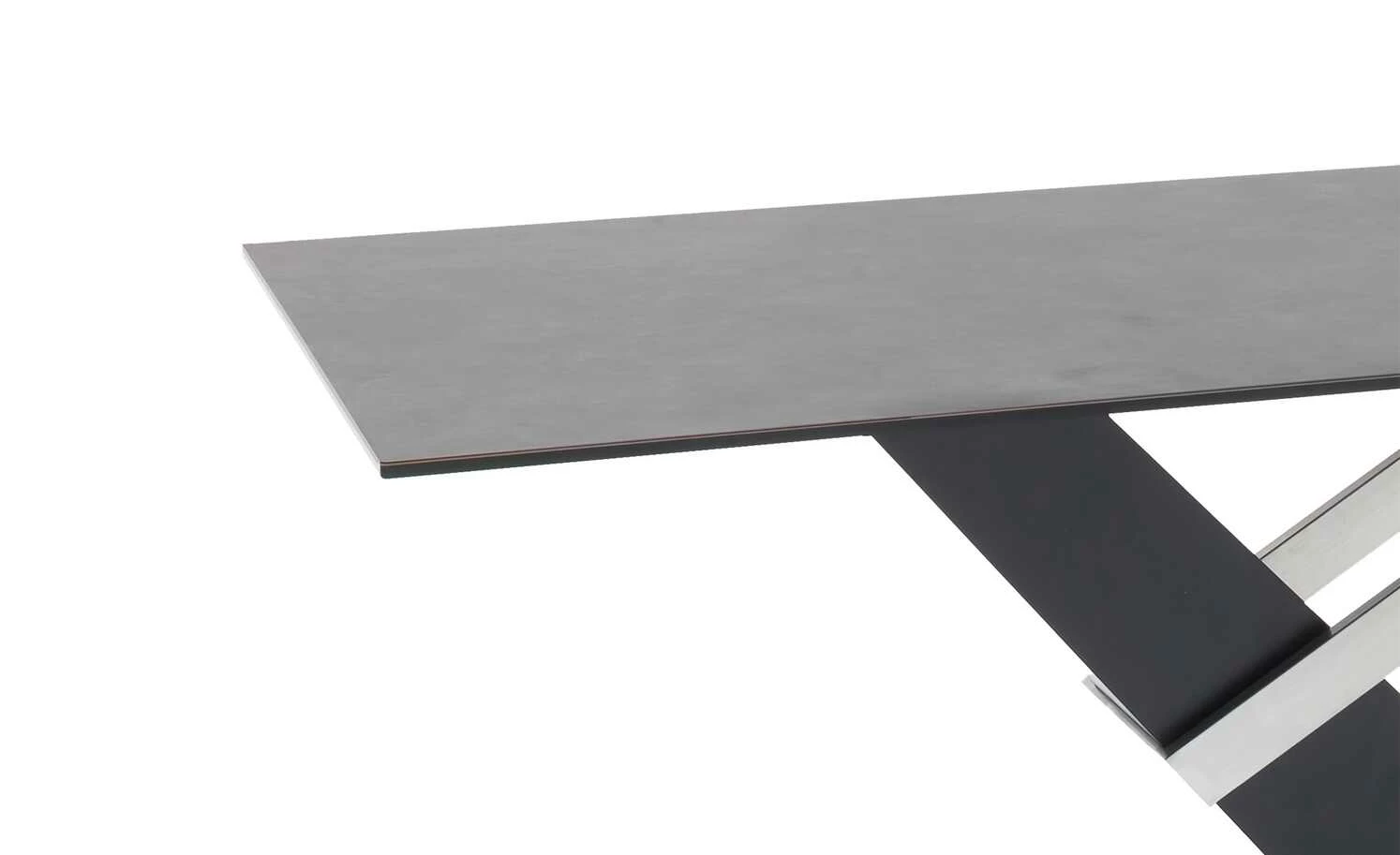 - Mehr zum Material: Säule aus Holzwerkstoff Schwarz matt lackiert und Edelstahl gebürstet, Bodenplatte aus Edelstahl gebürstet, Tischplatte aus Keramik Anthrazit auf Sicherheitsglas, Schwarz lackiert