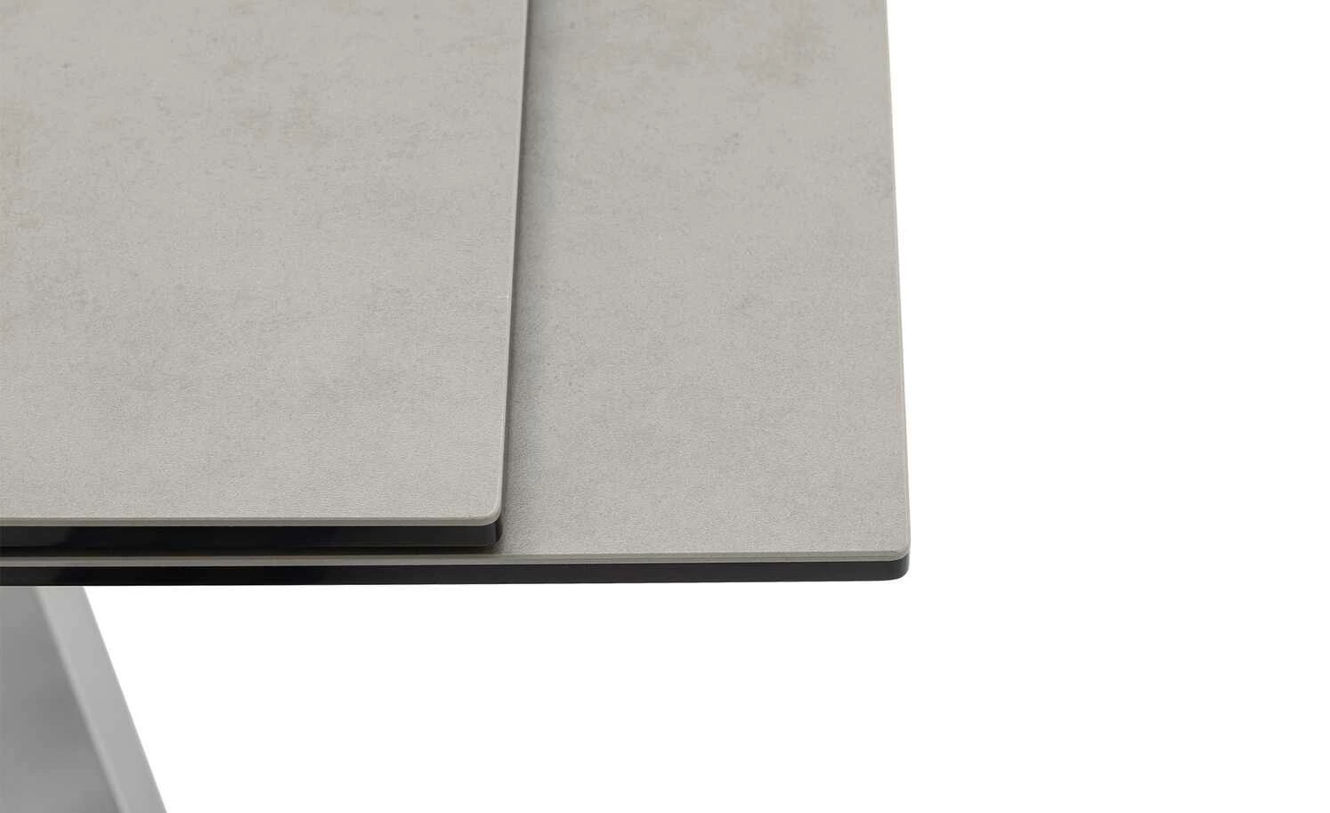 - Mehr zum Material: Tischplatte aus Keramik Hellgrau auf Sicherheitsglas Schwarz lackiert