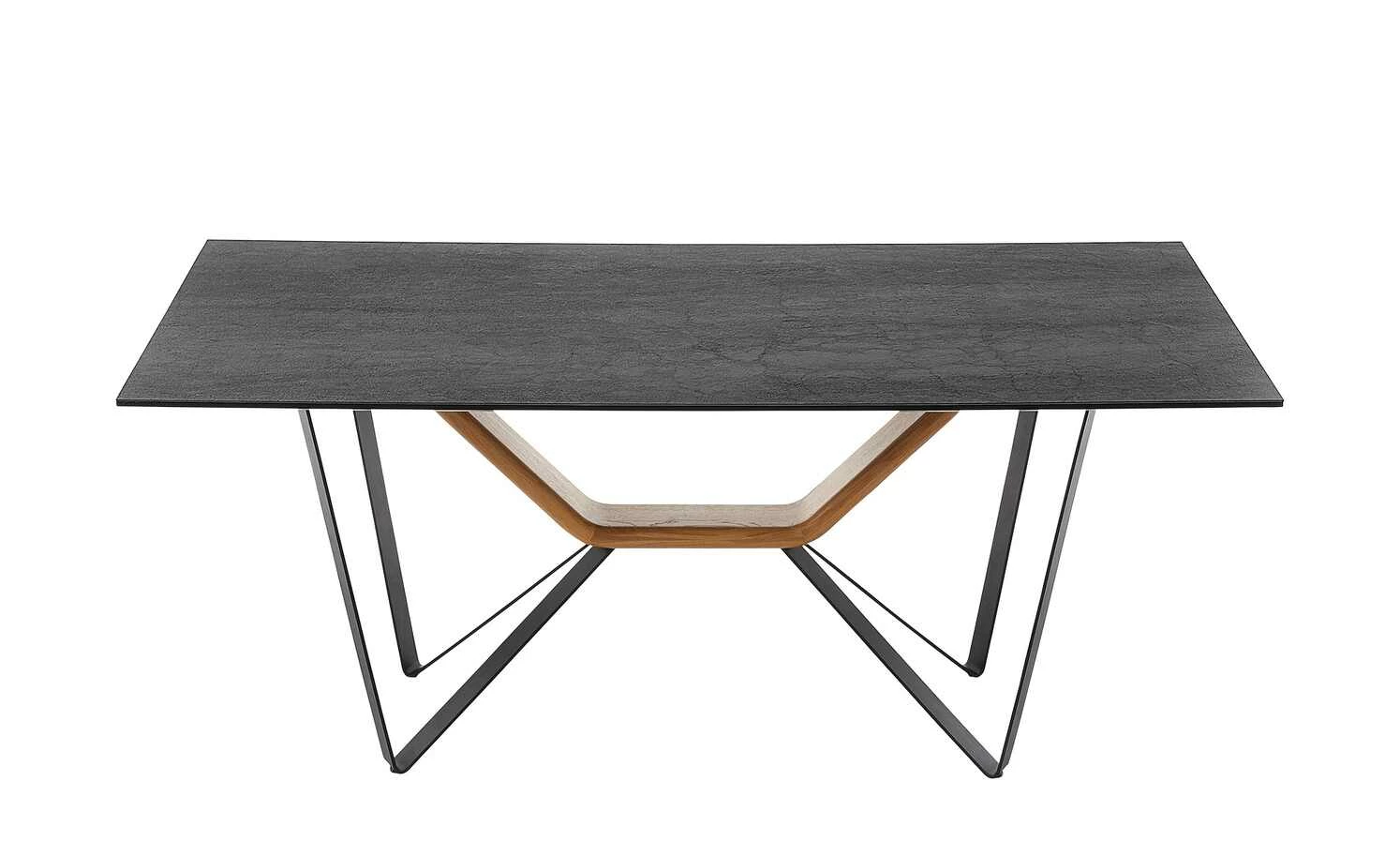 - Mehr zum Material: Tischplatte aus Keramik in Anthrazit, Gestell aus Metall pulverbeschichtet strukur in Schwarz matt, Massivholzbügel in Wildeiche natur UV-beschichtet mit Öl-Effekt