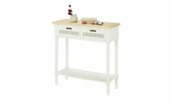 Der Konsolentisch Ilmennau ist ein Highlight für Wohnraum oder Speisezimmer – und macht sich auch im Flur gut. Sie können darauf Pflanzen, eine Lampe und viele dekorative Dinge platzieren. Neben der rechteckigen Tischplatte verfügt Ilmenau auch über eine praktische Ablage im unteren Bereich. Der Tisch ist aus massivem Fichtenholz gefertigt, was ihn stabil und langlebig macht. Tischplatte und Ablage sind im natürlichen Fichtenholzlook gehalten. Das Gestell setzt sich in Antikgrau ab, wobei die gewischte Farbe mit Used-Effekten versehen worden ist. Das passt perfekt zu den Verzierungen im Landhausstil.