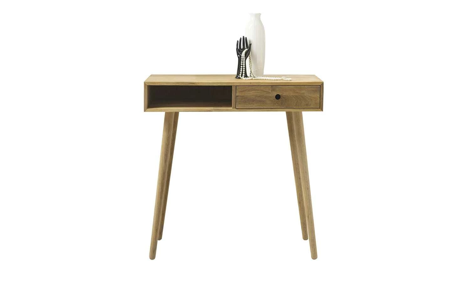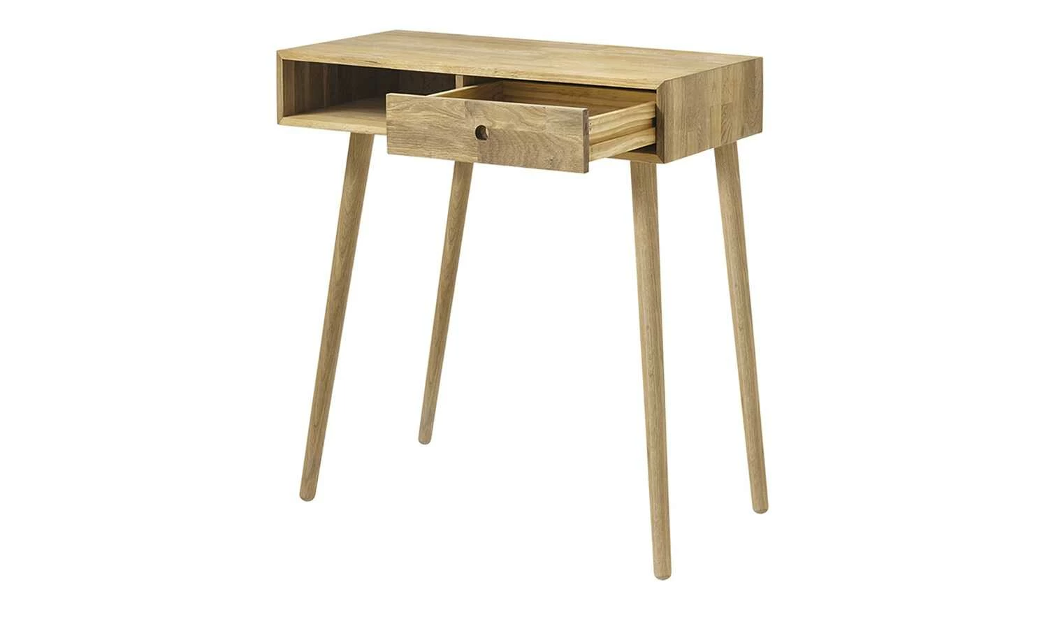 - Mehr zum Material: Tischplatte und Front durchgehende Lamelle