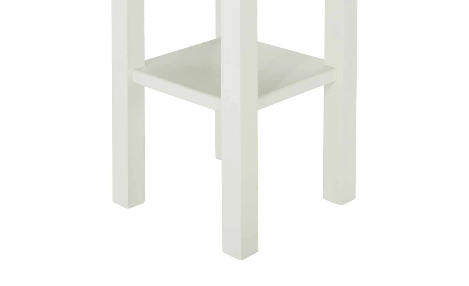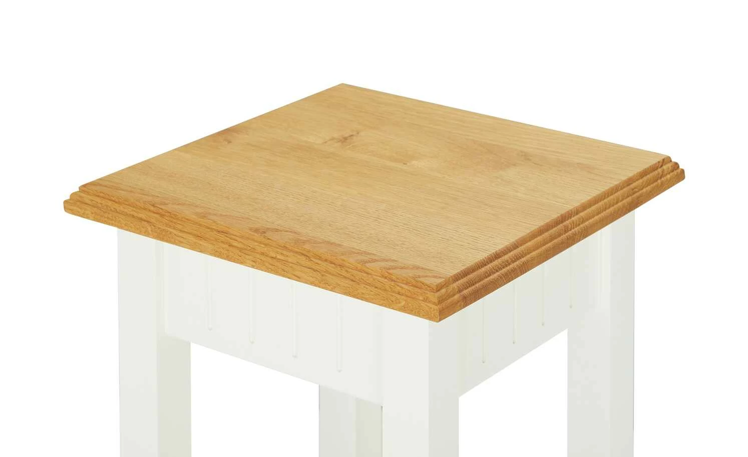 - Mehr zum Material: Tischplatte aus Wildeiche massiv geölt, Gestell aus nordischer Polarkiefer massiv in Reinweiß lackiert