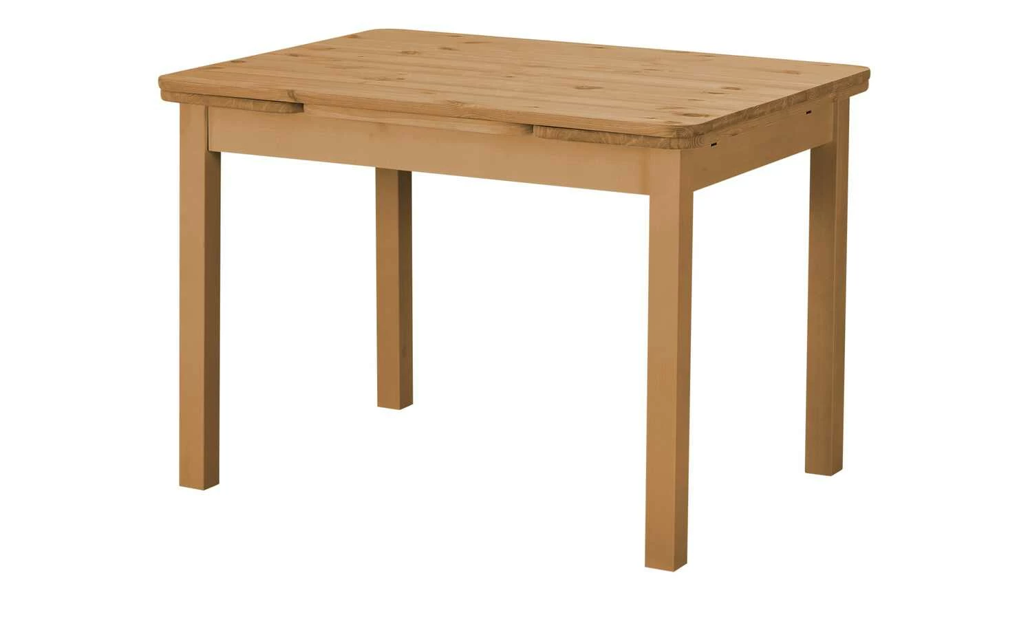 Der Esstisch ist in Kiefer massiv gefertigt. Das Gestell ist weiß lackiert und die Platte laugenfarbig, was den Landhausstil unterstreicht. Aufgrund seiner Größe ist er ideal für kleine Räumlichkeiten. Durch die beiden Ausziehplatten mit jeweils 25 cm, kann die Fläche des Tisches für ca. 6 Personen vergrößert werden.