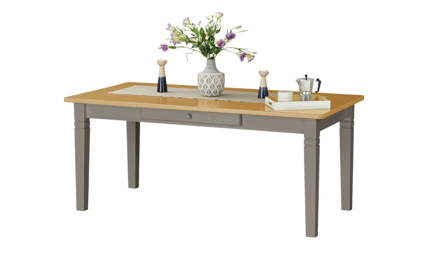 Wenn Sie den Landhausstil gerne mögen, dann ist der Esstisch Florian genau richtig. Der hochwertige Tisch besteht komplett aus massiver Kiefer. Die Holzoberfläche wurde gebeizt und lackiert. Am Gestell des Tisches befinden sich dekorative Ornamente, die Florian sein besonderes Aussehen geben. Entscheiden Sie zwischen einem rustikalen Design Ton in Ton, oder dem kontrastreichen Design mit farblich abgesetzter Tischplatte.