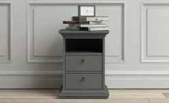 Das Bettgestell Coventry lässt sich wunderbar mit dieser gleichnamigen Nachtkommode ergänzen. Sie ist passend zum Bett in Alpinweiß designt. Coventry ist mit zwei Schubladen ausgestattet und bietet so praktischen Stauraum.