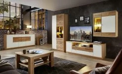 Woodford Couchtisch Alabria | Akazie Natur 75 x 75 cm Antikgrau Gestell in X-Form