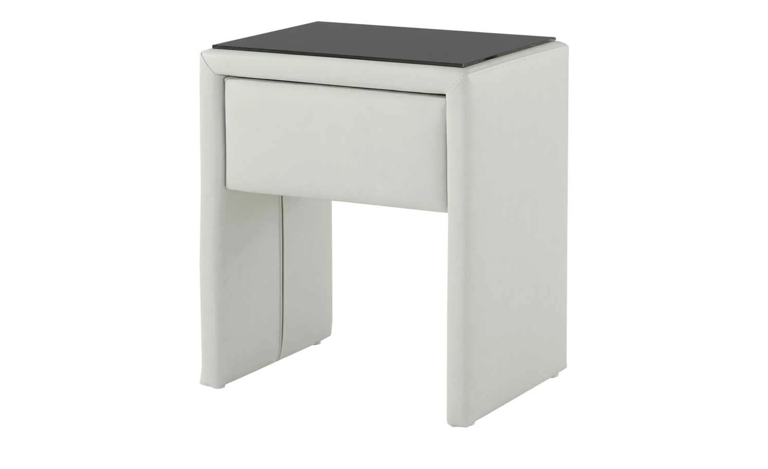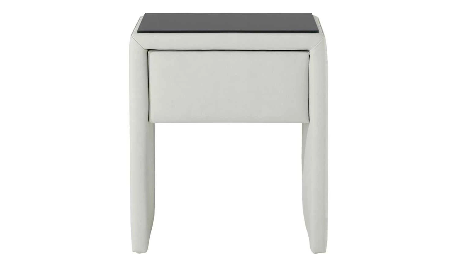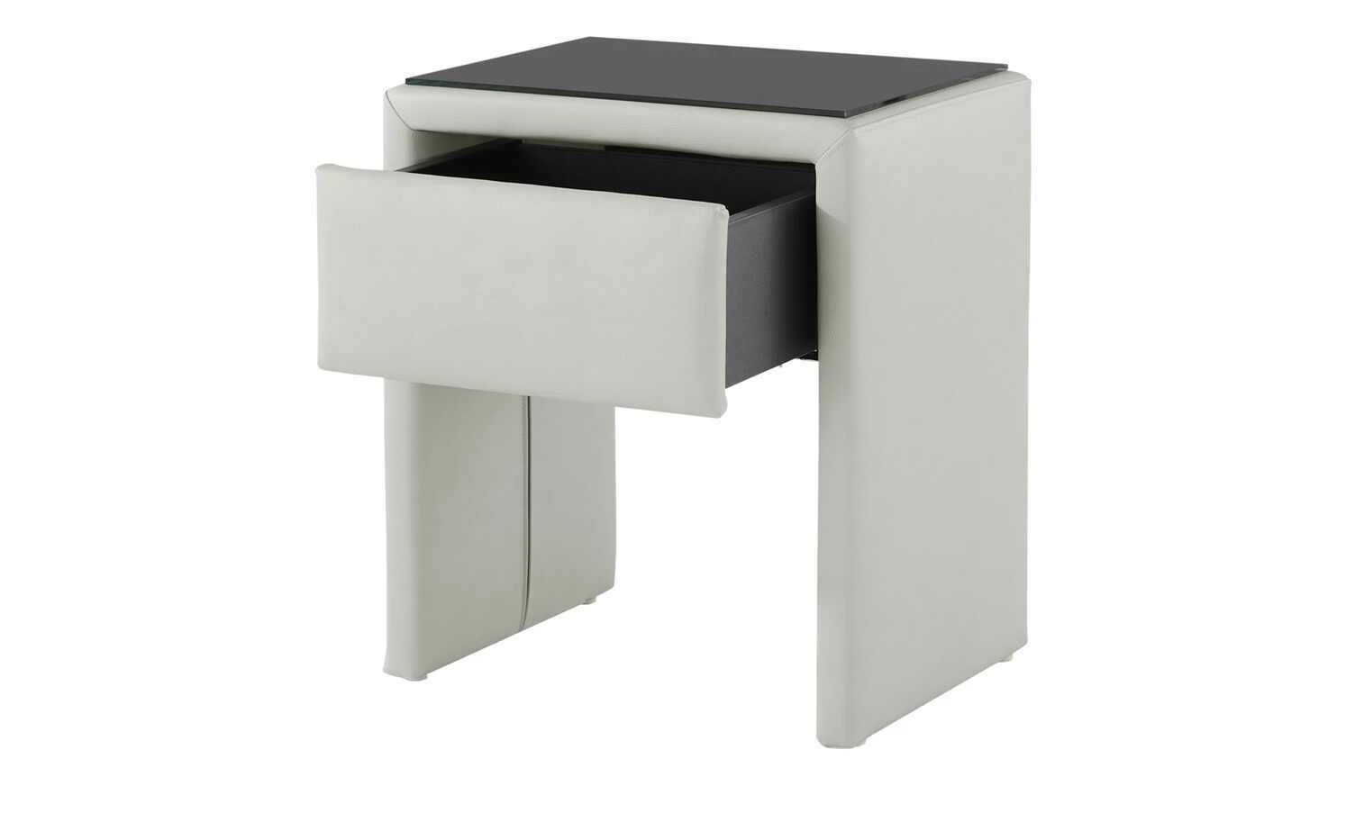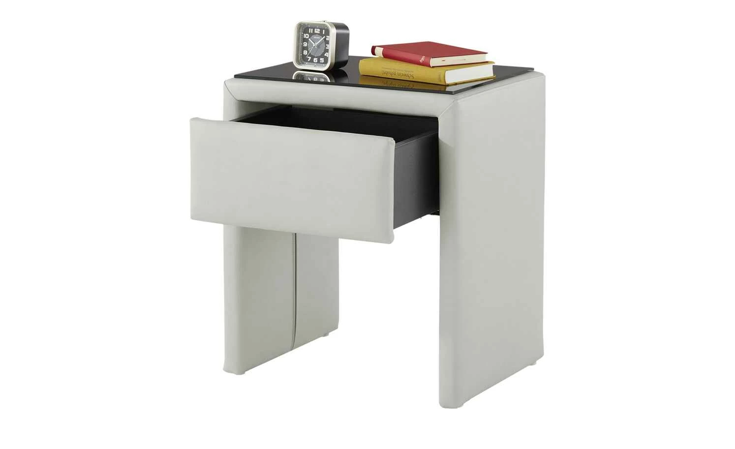 RUF-Betten stehen für höchsten Komfort bei stilprägendem Design: Und das schon seit 1926. Durch einzigartige Design-Konzepte verspricht jedes RUF-Möbel unvergleichlichen Komfort der keine Wünsche offenlässt. Beim Nachttisch Tiso werden schwarzes Glas und Kunstleder stilsicher miteinander kombiniert. Der attraktive Kufentisch überzeugt durch griffloses Design und eine hochwertige Verarbeitung in RUF-Markenqualität. Verstauen Sie Ihre Lesebrille oder Abendlektüre im blickdichten Schubfach. Dieses besitzt einen praktischen Selbsteinzug. Wählen Sie aus einer zeitlosen Farbpalette und komplettieren Sie Ihr Schlafzimmer mit dem Nachttisch Tiso.