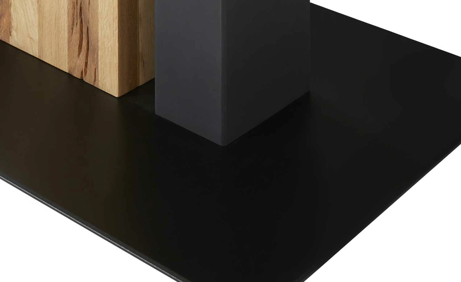 - Mehr zum Material: „Schwebende“ Bodenplatte in MDF,Dekor: Schwarz, Gestell: Roheisen (Schwarz), Holzart: gerissene Balkeneiche natur mit Wachseffektlack versiegelt