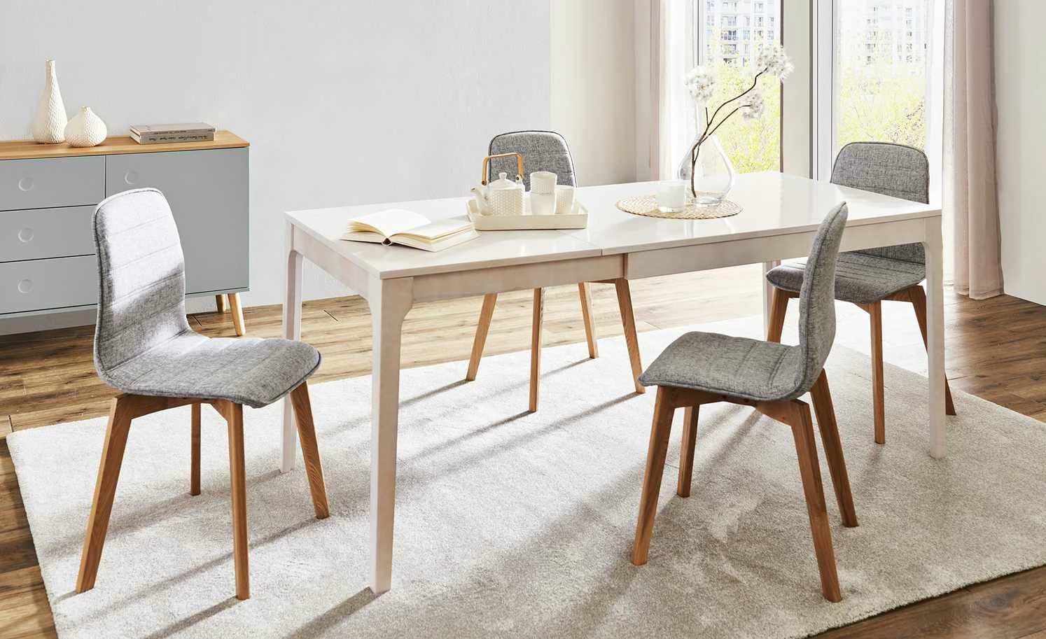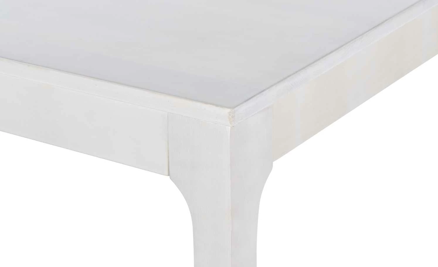 Der Esstisch Magnus ist perfekt für Ihre Essecke oder macht auch als Küchentisch eine gute Figur. Magnus kann bei Bedarf ganz leicht vergrößert werden. Im ausgezogenen Zustand ist er 180 cm lang und bietet dann Platz für acht Personen. Nicht ausgezogen sind es sechs Personen. Tischplatte und Gestell sind aus massiver Kernbuche gefertigt und weiß lackiert, wobei die holztypische Maserung aber dennoch leicht zu sehen ist. Das edle Kernbuchenholz hat eine langlebige und stabile Qualität.