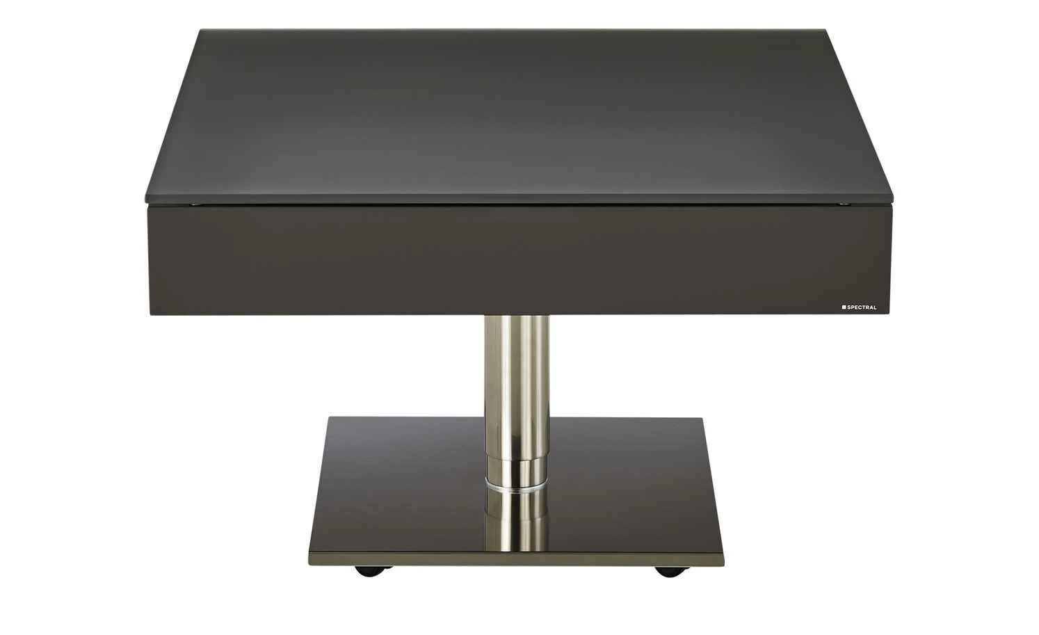 Der Couchtisch Tables überzeugt mit Design, Qualität und Funktionalität. Er ist von der Marke SPECTRAL, trägt das Siegel Made in Germany und besteht aus besten Materialien. Dazu gehören Glas, Aluminium und Edelstahl. Die Tischplatte ist aus satiniertem Glas gefertigt. Das Säulengestell aus galvanisiertem Aluminium lässt sich in der Höhe variieren – und zwar von 45 bis 62 cm. Unterhalb der Bodenplatte befinden sich Rollen, durch die Sie den Tisch leicht bewegen können. Ein offenes Fach unterhalb der Tischplatte bietet zusätzlichen Stauraum.